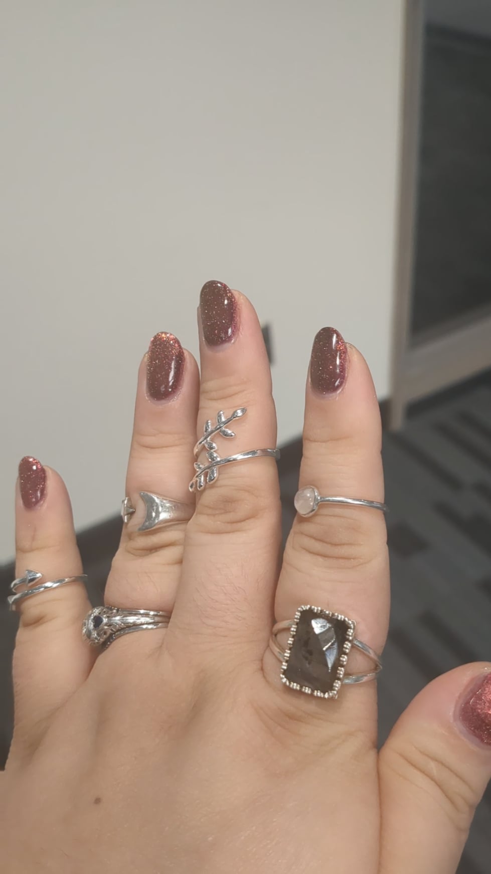It's just so Beautiful!!! Kbshimmer stay put hydrating base coat Fillin' groovy base coat Bk miromabby 3 coats with horseshoe magnet Glisten and glow glitter grabber Sally Hansen insta dri top coat two coats I can't stop looking at my nails. by bruiser_knits