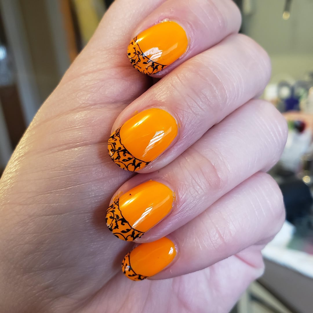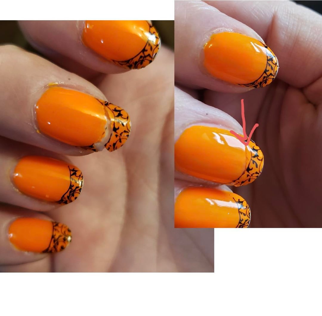 – 2 coats DIY neon orange – base and pigment from Sheba nails