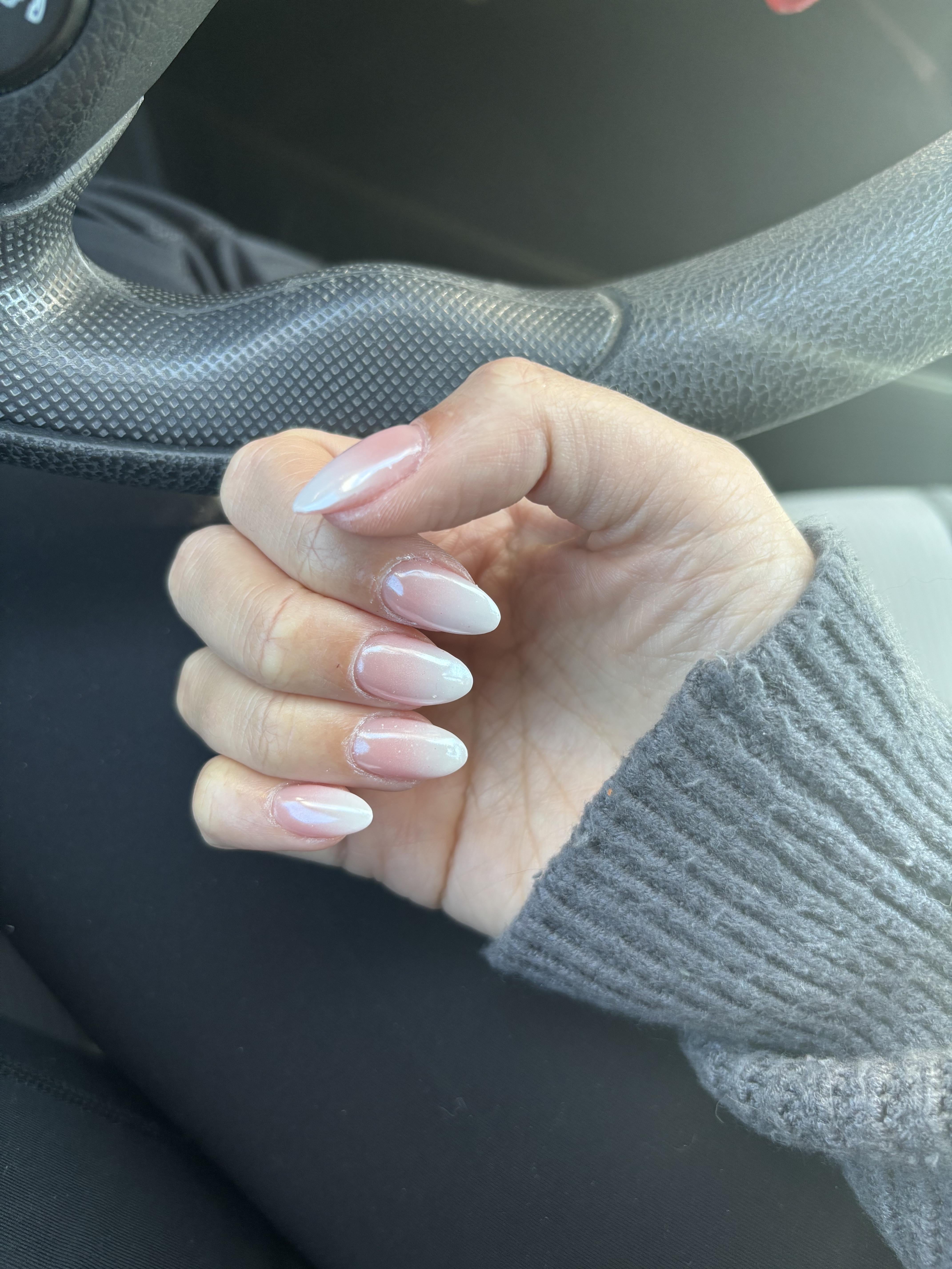 I guess I’m not seeing ombré or chrome, but they look nice. Your cuticles need oil, stat! That’ll help.