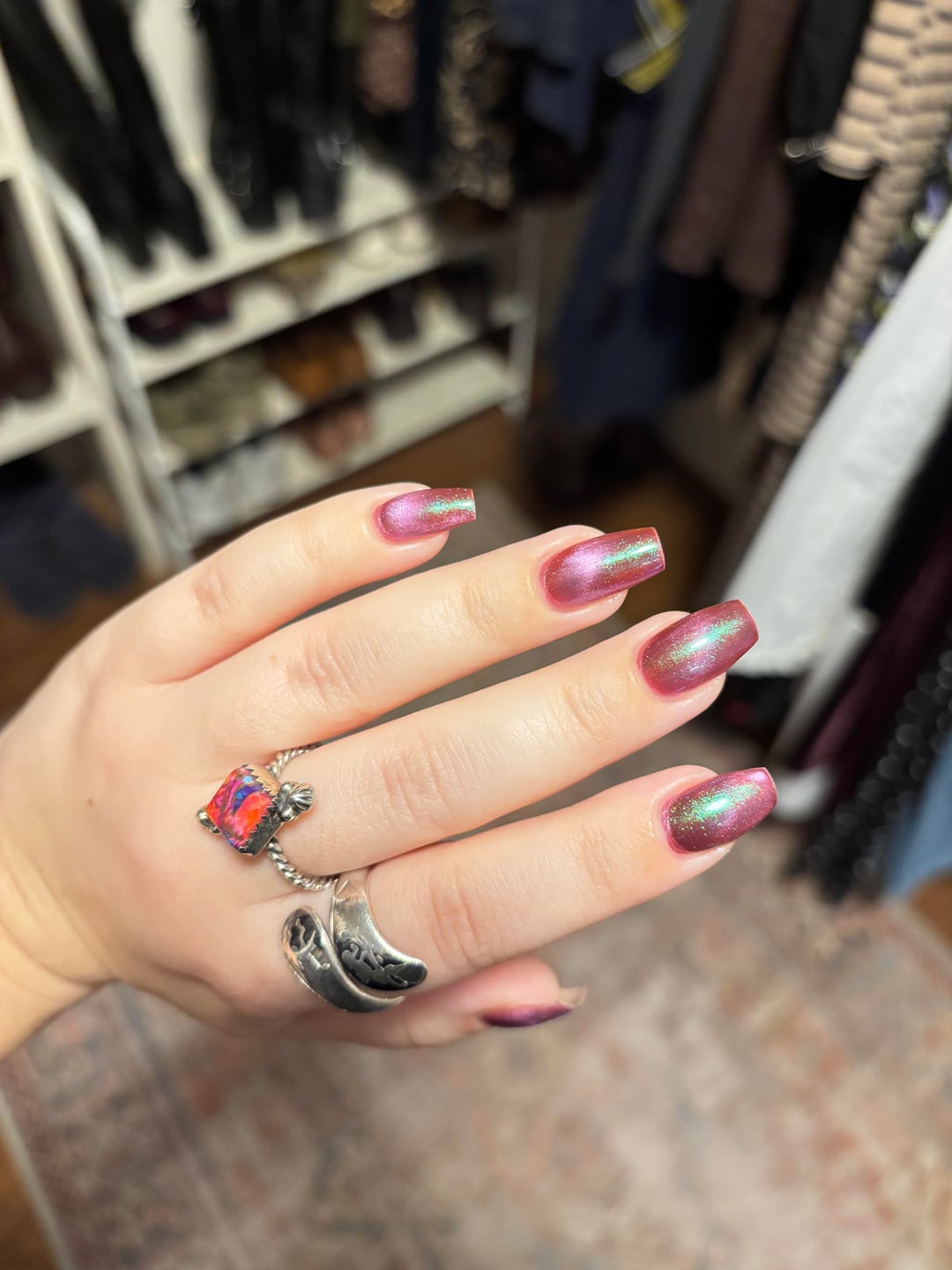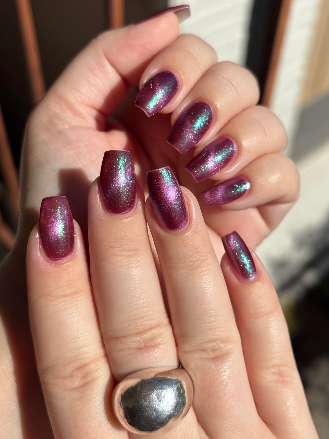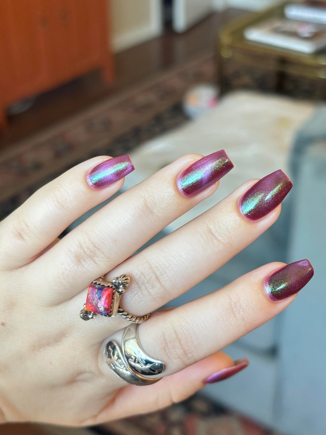 To keep this tangent going, I think the cat eye style is especially hard for me bc every nail turns out looking different. Magnetizing all 10 nails for multiple minutes each, and then inevitably messing up between 1 and 3 nails from bumping them with the magnet and having to redo them sent me into a rage last night👹 but they sure r pretty.