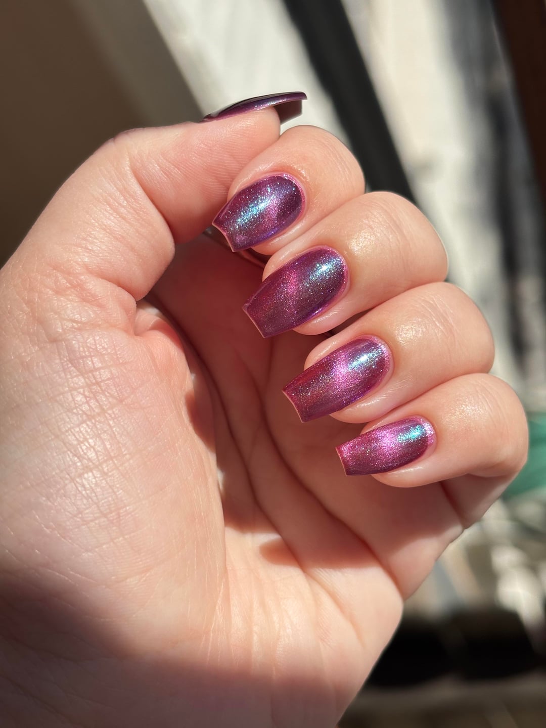 I won the Rest in Polish collection from Cracked’s IG giveaway, which I am so so excited about! This is the first one I tried because as soon as I saw the swatches, it was on my wishlist (magnetic hatred aside). It looked so beautiful in the cat eye style from the swatches I had seen, and although I HATED doing this mani, it really is a gorgeous polish. It has definitely reaffirmed for me that I will NOT be purchasing anymore magnetics, but I’m very happy to have this be the last one I add to my collection!! I can’t wait to try the rest of this collection 🙂
