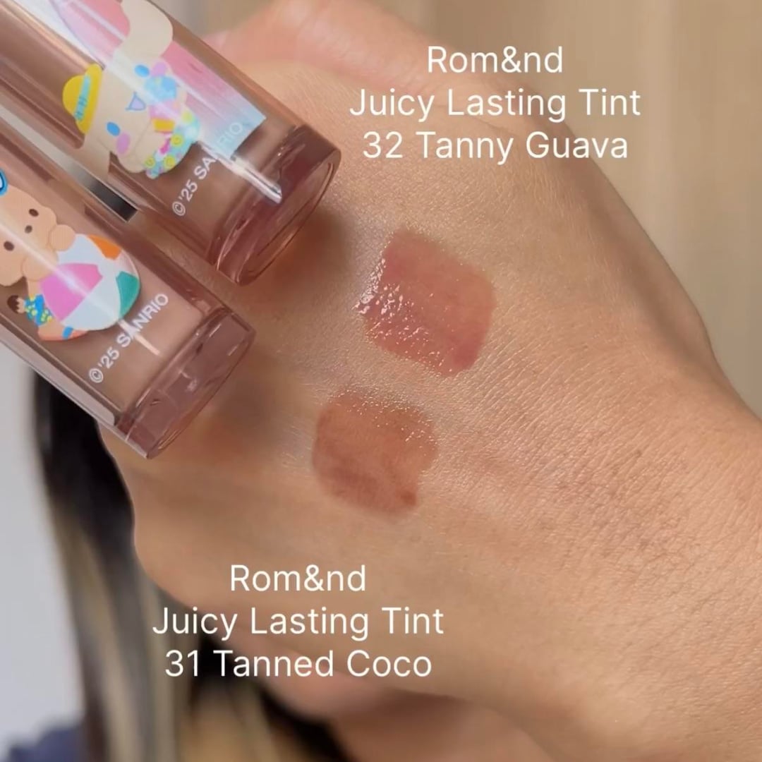 Hey y’all, today I compared Rom&nd Juicy Lasting Tints 31 Tanned Coco and 32 Tanny Guava from Sanrio Collection. ✨