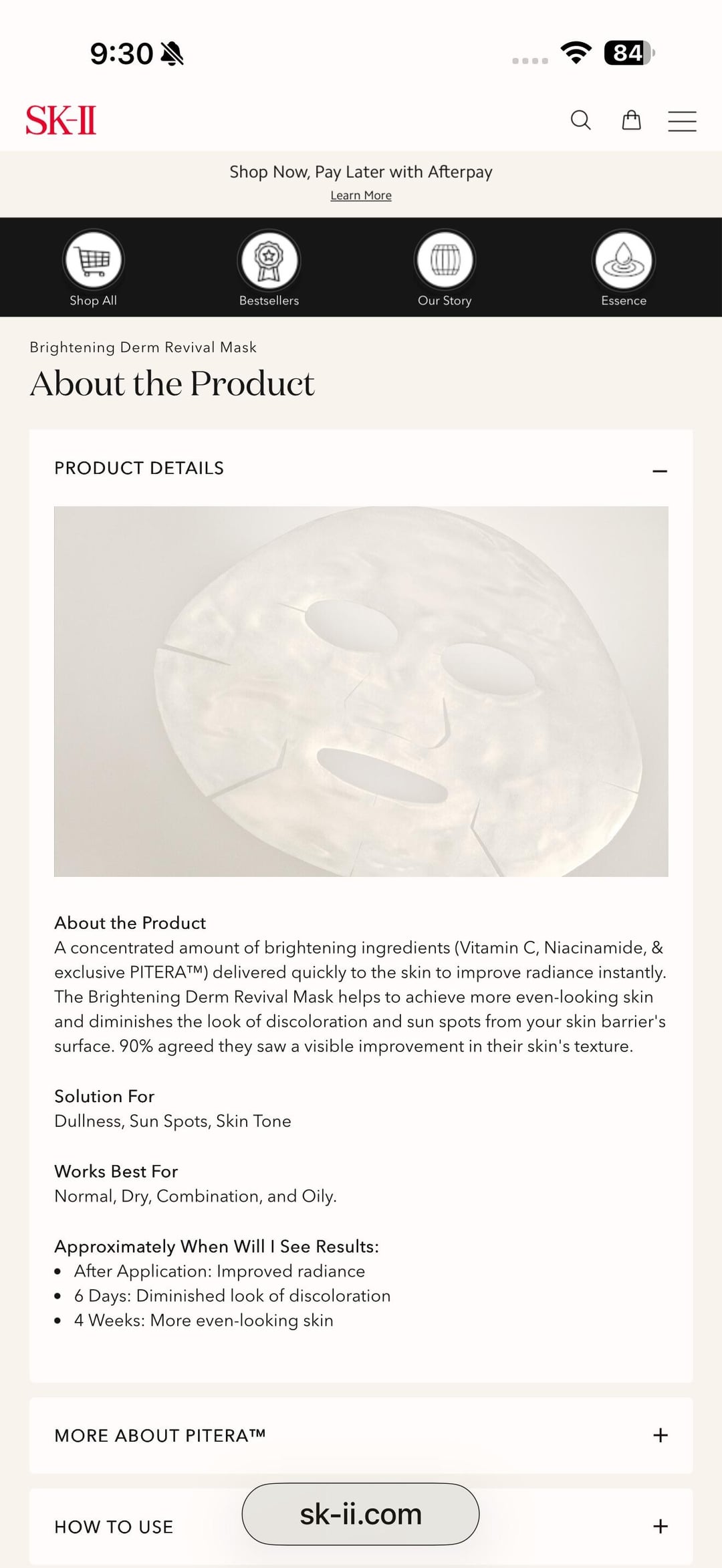 But then I put the mask on and it doesn’t look right. I’ve used the Pitera masks before and they certainly don’t have these weird eye flaps. They don’t have the eye flaps on the SK-II website either. The masks also have a chin cut-out which these ones don’t have.
