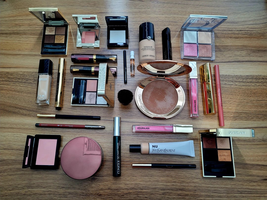 Guys, the time is finally here. Alert, this is long! I always wanted a minimalist designer makeup collection. I think it's so chic. After panning a couple products and organizing my space, I realized I have a lot at least one product in each category that I love and is also super luxe, so not only can I stop buying products because I have so much, but actually the products I do have are so expensive and pretty and make me feel so amazing when I use them. So, in order to feel like a minimalist, I put everything else away am only keeping these products, one portion is in my makeup drawer, the other is a travel bag I use for touchups theoughout the day. So, yes I am continuing my project pan, but with this small collection that I will be exclusively focusing on. I'm really happy to post this because I hope to show you the progress of these products with time, but I've realized that I don't have to wait to use my best products. And if my cheap stuff expires, then tough luck. I'm enjoying all of my good stuff! Panning products shouldn't be a depressing chore. This is your sign to use your best products! Life is short be happy!