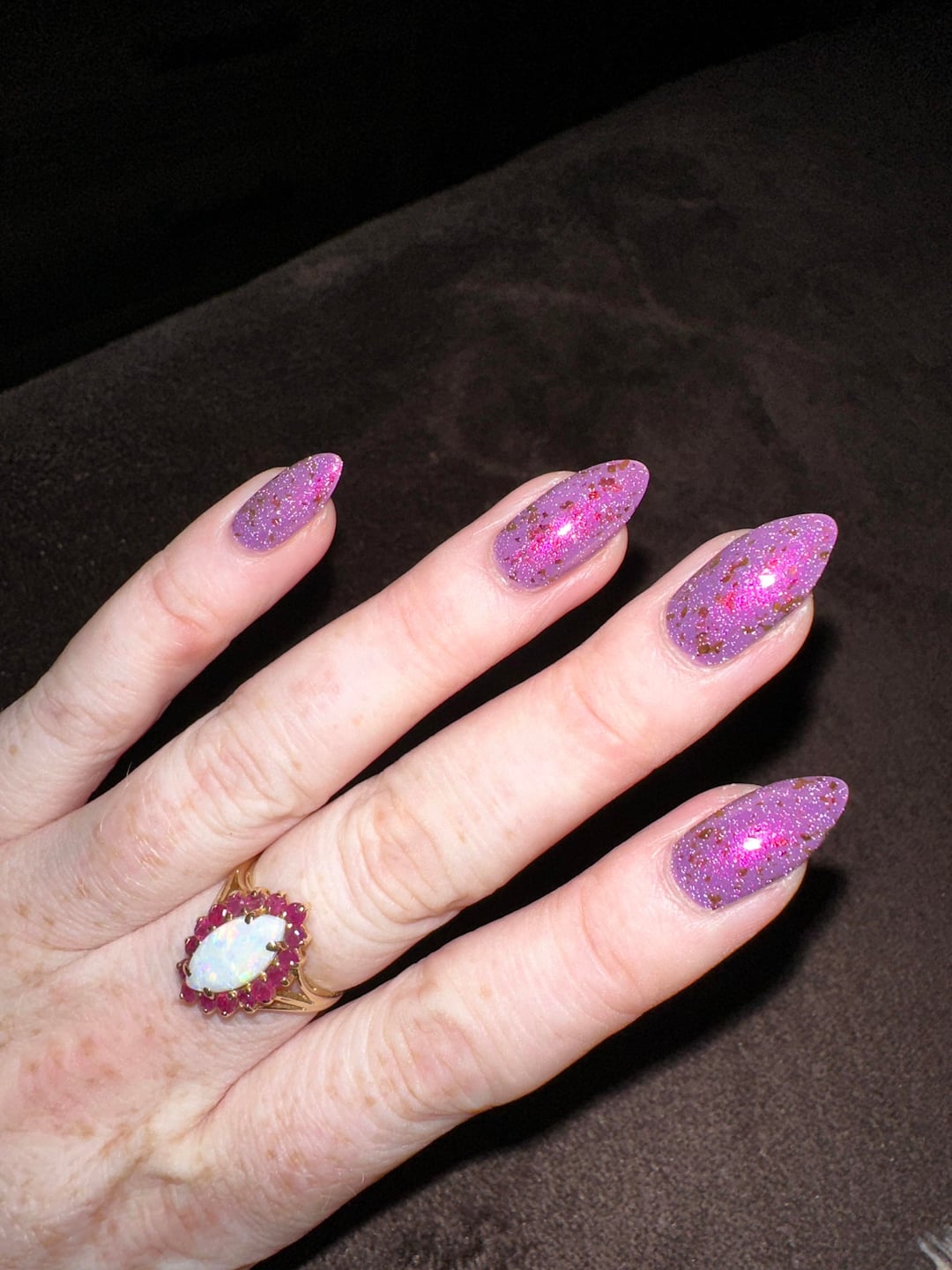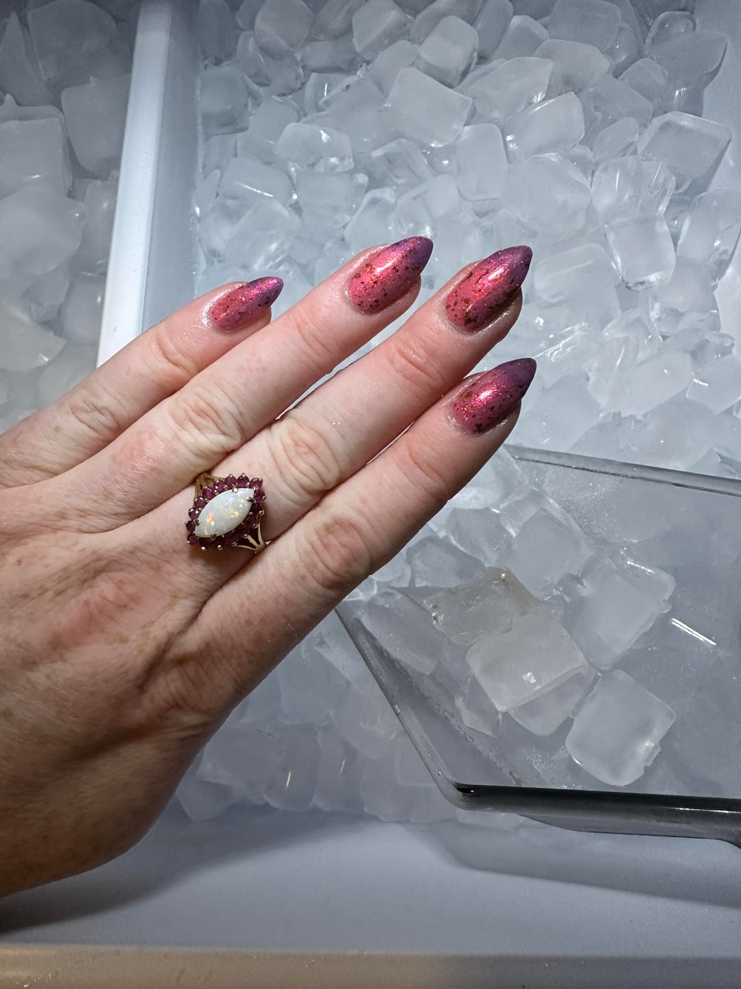 I stick my hand in the freezer when I’m wearing thermals too! 🤣 The polish and your ring are both gorgeous!