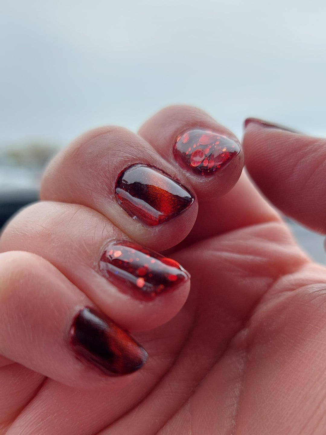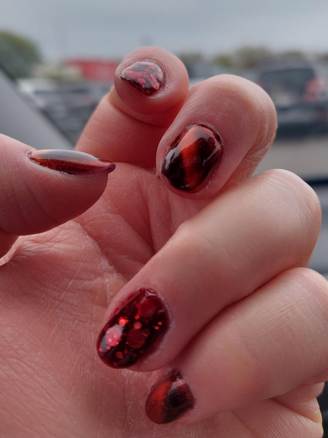 I went for a saturated, sanguine nail look to go with my vampire costume this weekend. I haven't been this elated about my nails in months, they look like little gothic jewels!