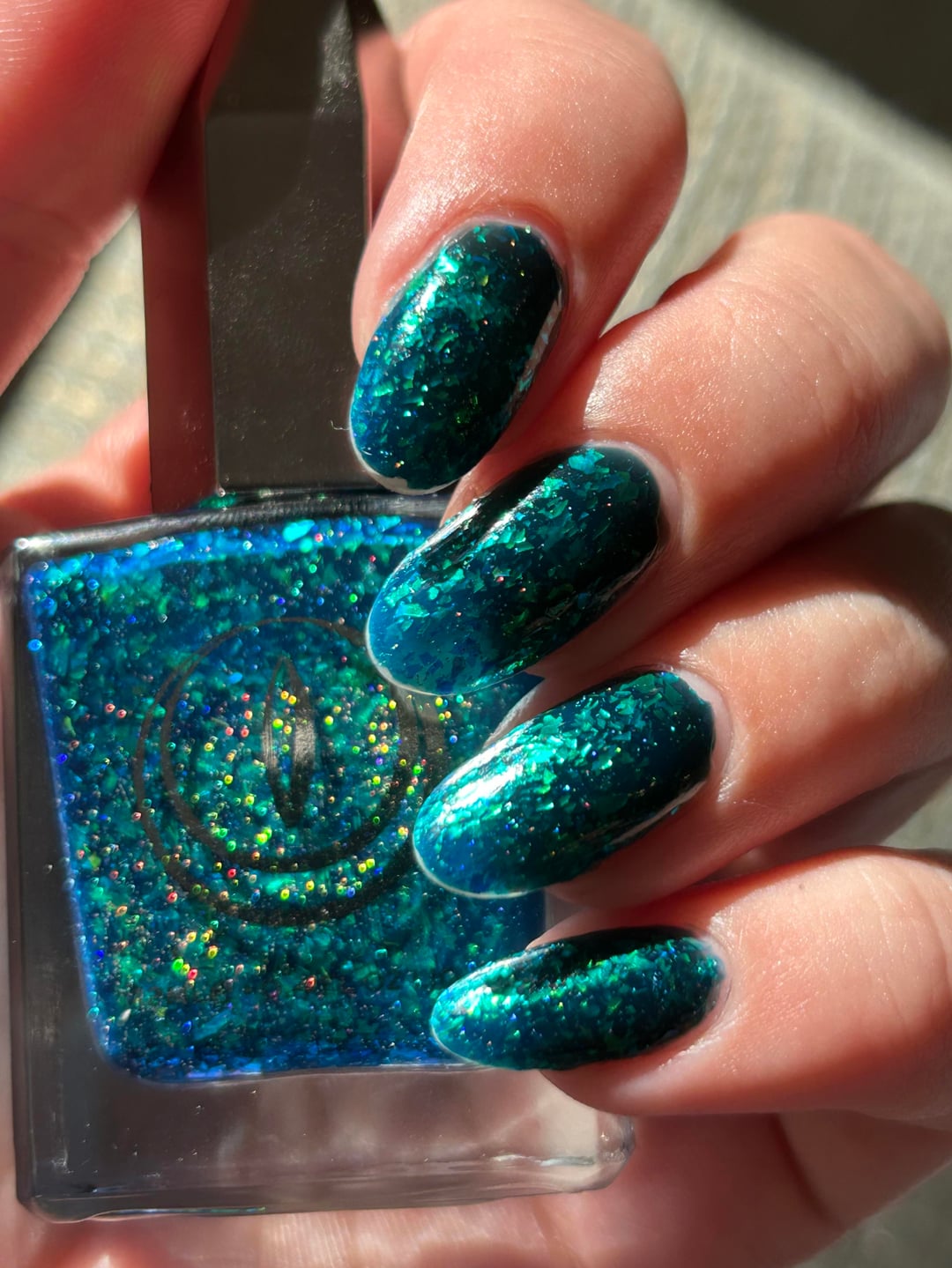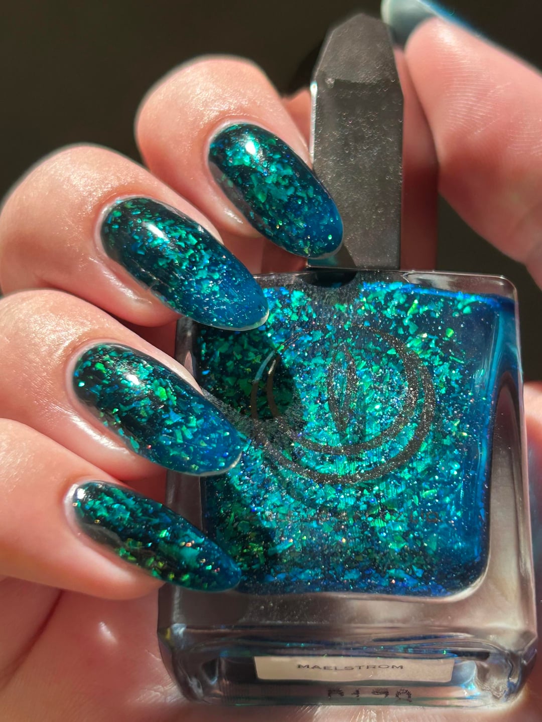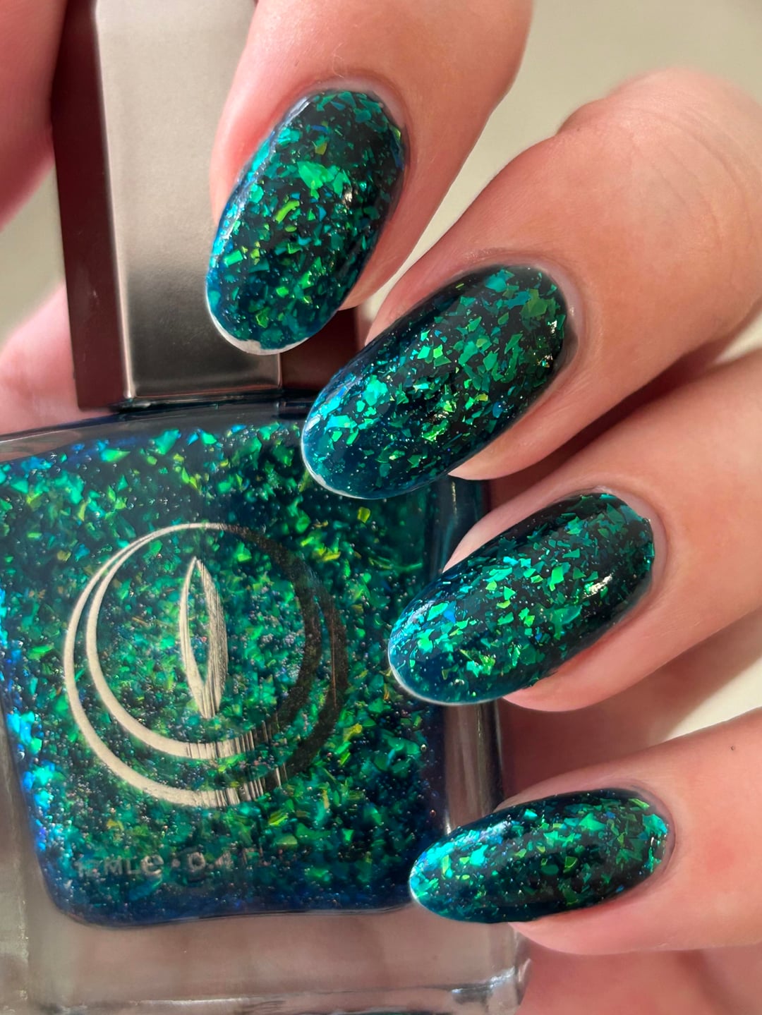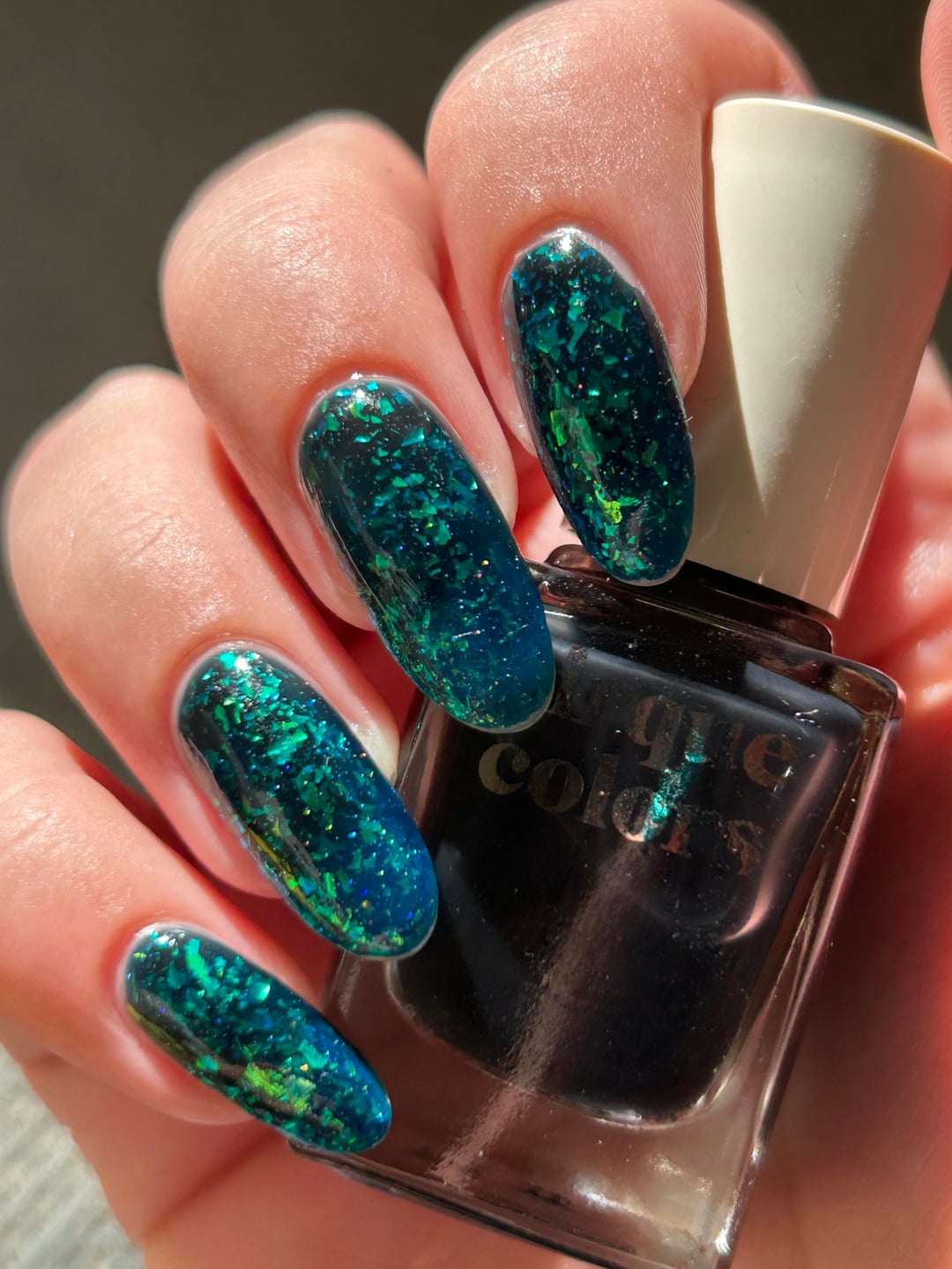 I’m not sure how well you can see it in pictures, but the gradient is black to blue/green (and I think it turned out pretty good, it’s very dark near my cuticles) Used Mooncat- maelstrom Cirque Colors- nsfw jelly by ResearcherComplete57