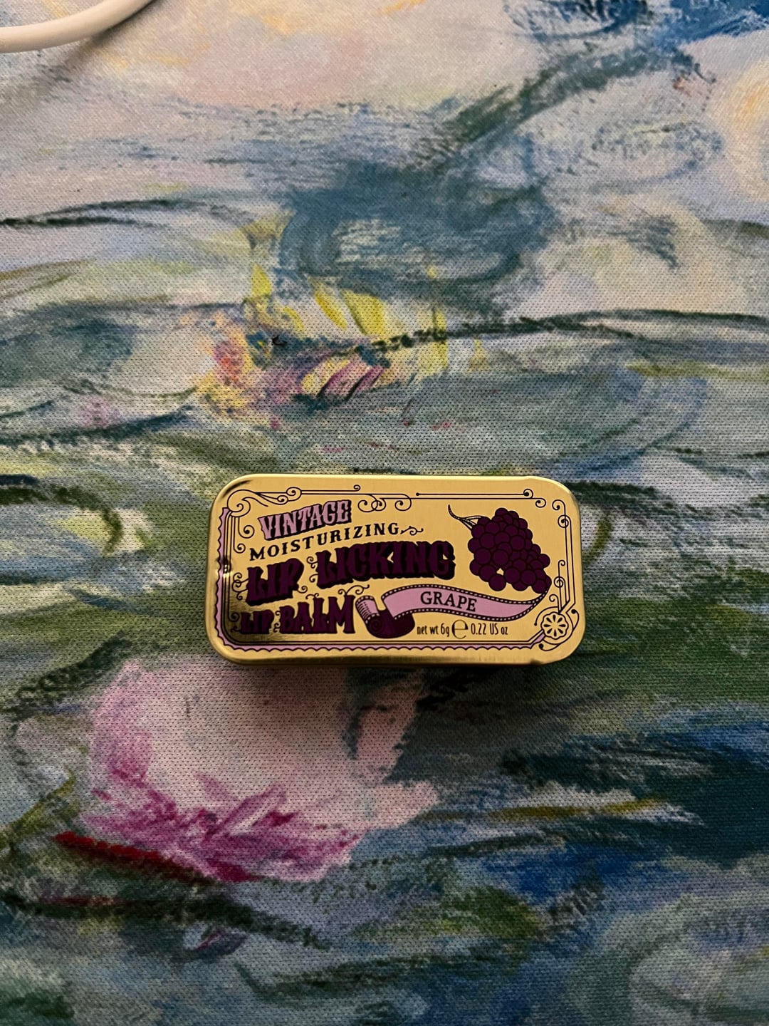 I guess the brand is vintage moisturizing lip licking lip balm in the grape flavor lol. Prob had this for 7 ish months w very minimal consistent usage I’m actually shocked this has pan but maybe because its not a stick ! by puestadelsol