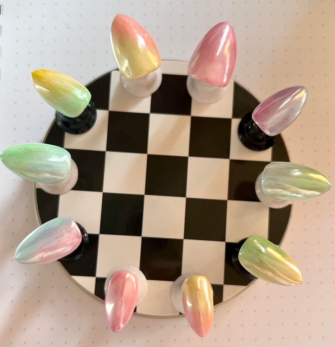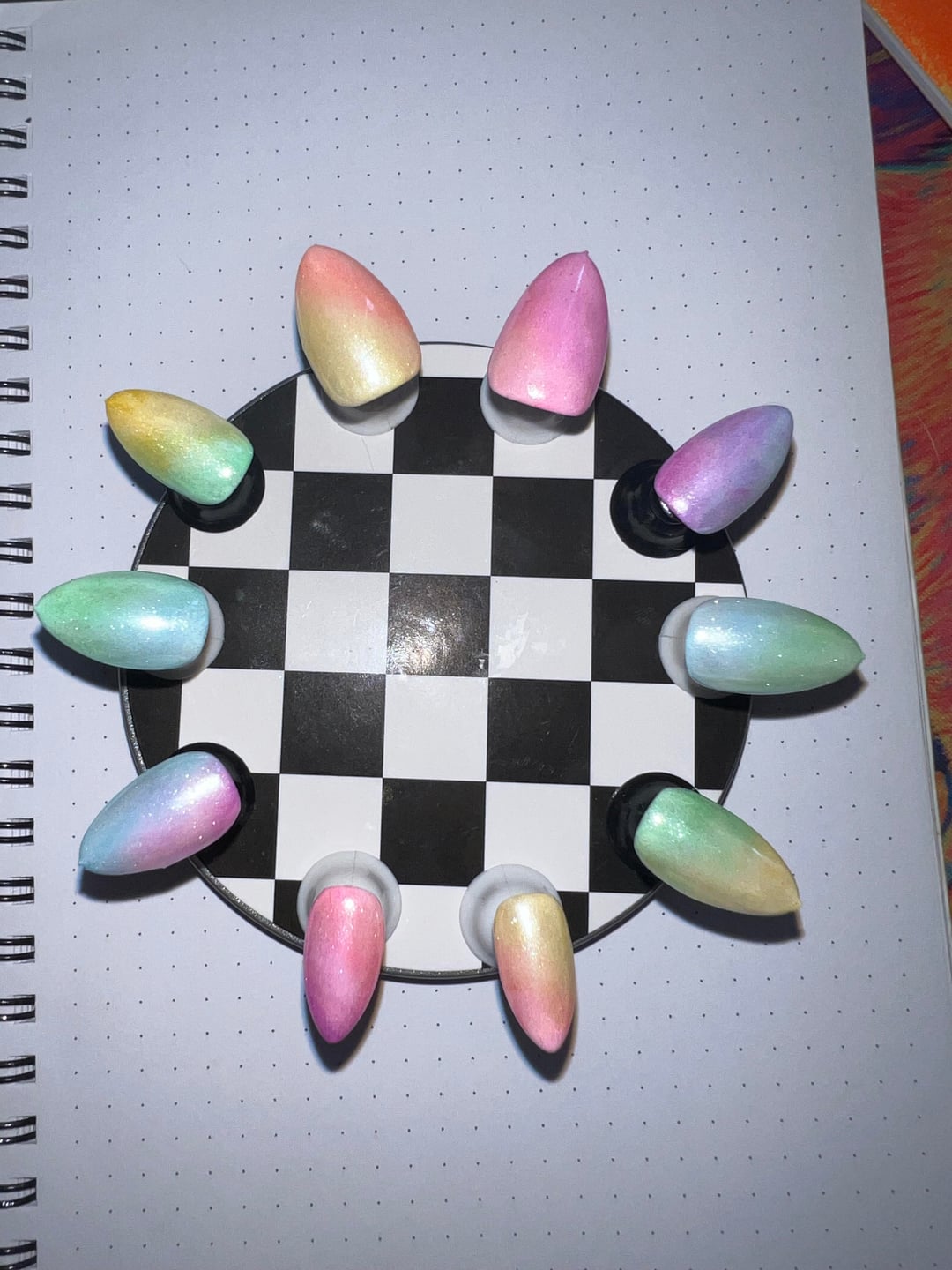 I want to practice stamping on this gradient rainbow chrome set, but have no idea what stamps would go with it!! Color recommendations also appreciated 🙂 by LactoseLuvr