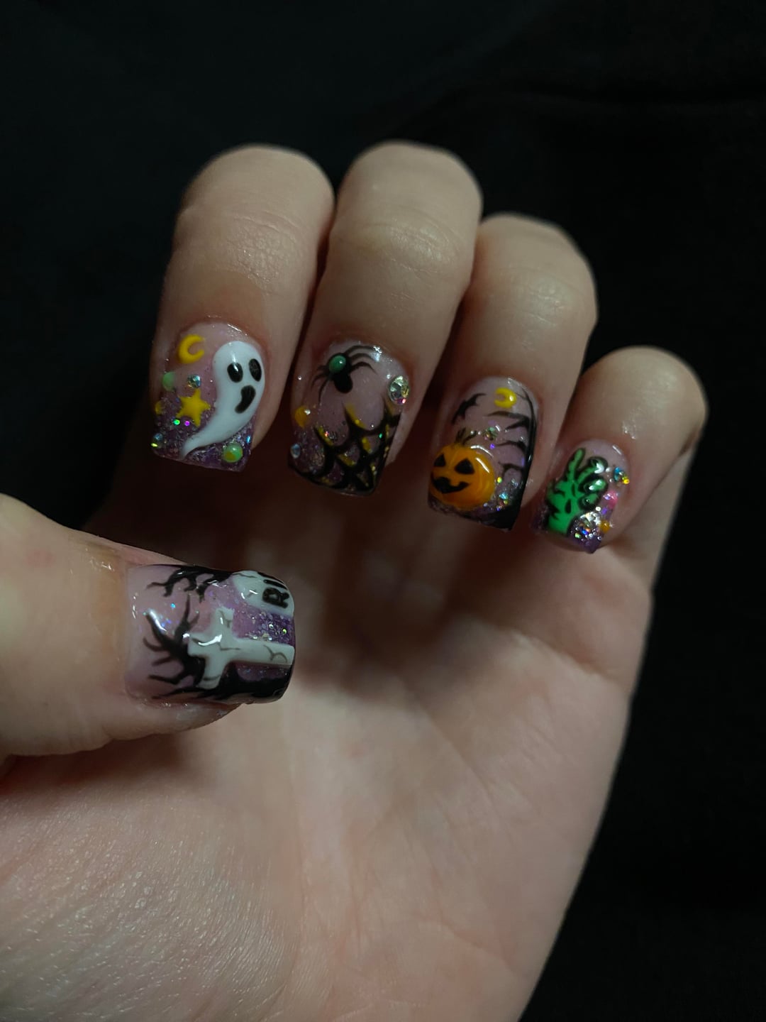 Ignore my mangled cuticles! Used polygel and hard-gel to experiment with some 3D textured 🙂