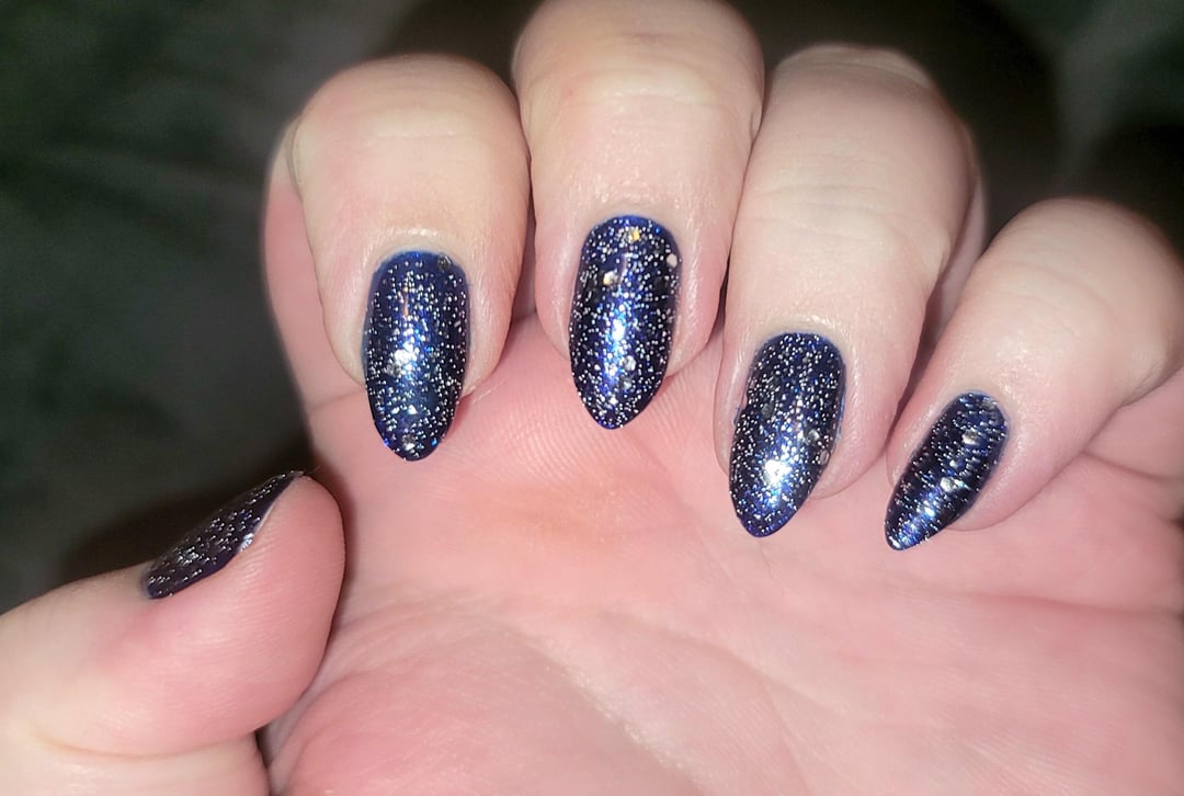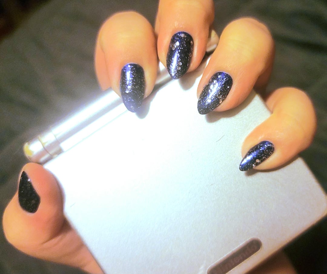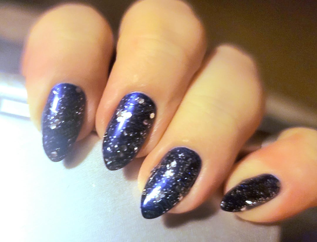 3 coats OPI Lacquer in Chopstix and Stones; 1 coat Holo Taco Reflective Taco; 1 coat LA Girl Color Pop Nail Polish in Explosion; 2 coats Essie Gel Couture Quick Dry Top Coat by idklikeaburnerorwe