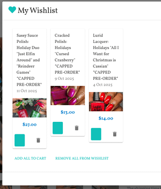 I try to keep it under 20 sticks in there. Right now I’ve got 40… sooo it’s probably time for a no-buy month while I let everything come in. I’ll be attempting to skip HHC this round because I went feral buying Lurid and Potion Polish. (Added a pic of my wishlist. Feel free to de-influence me.)