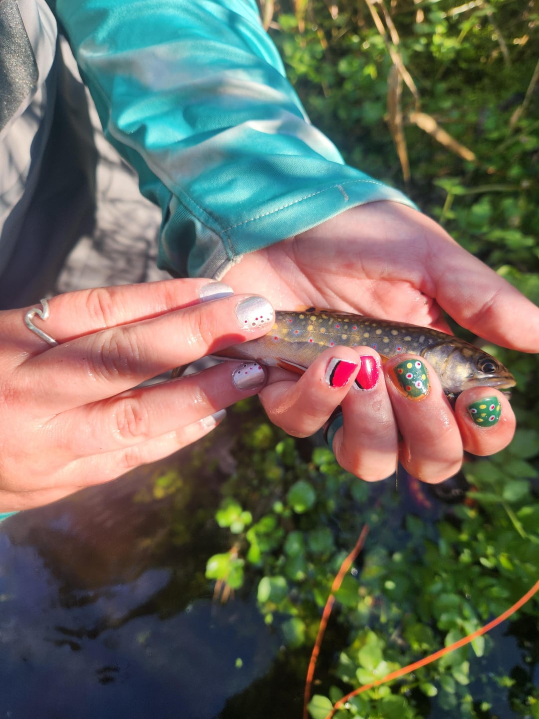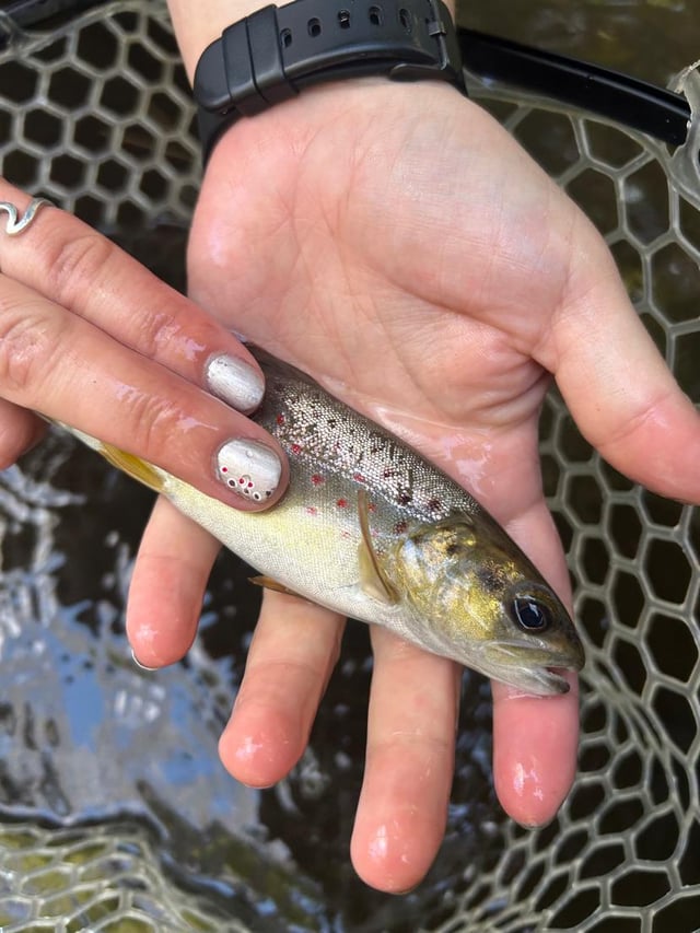 I had a Trout Unlimited event to attend and decided to do brook and brown trout nails. When I went fishing later I got the chance to pose the nails with their respective fish! by Botanisosurus_Rex
