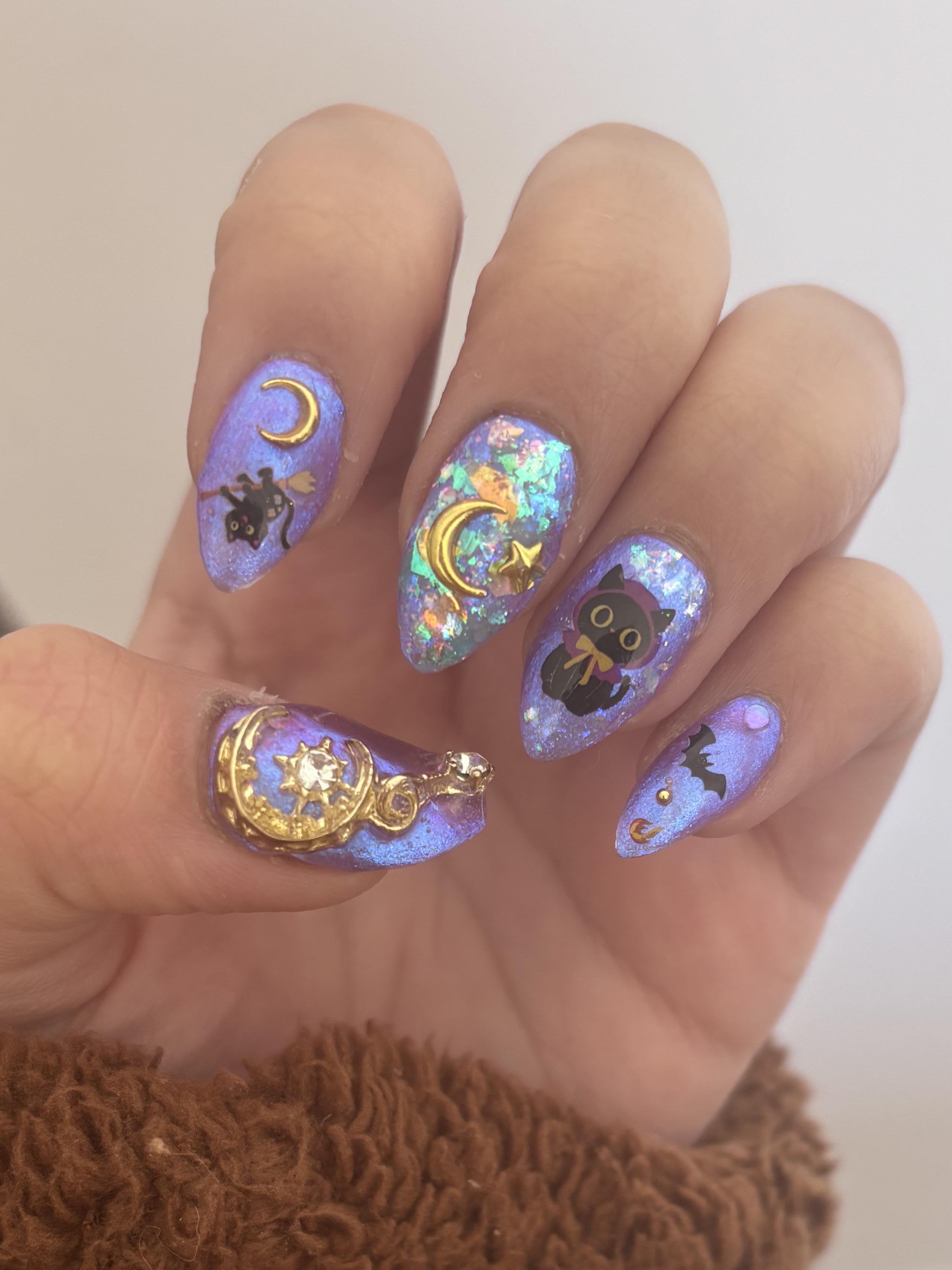 The base is 5 (yes, 5) coats of Lurid The Brutal Beauty of Deep Winter I used gel to apply the charms and added the lavender fields gel topcoat by Advanced-Set-9663