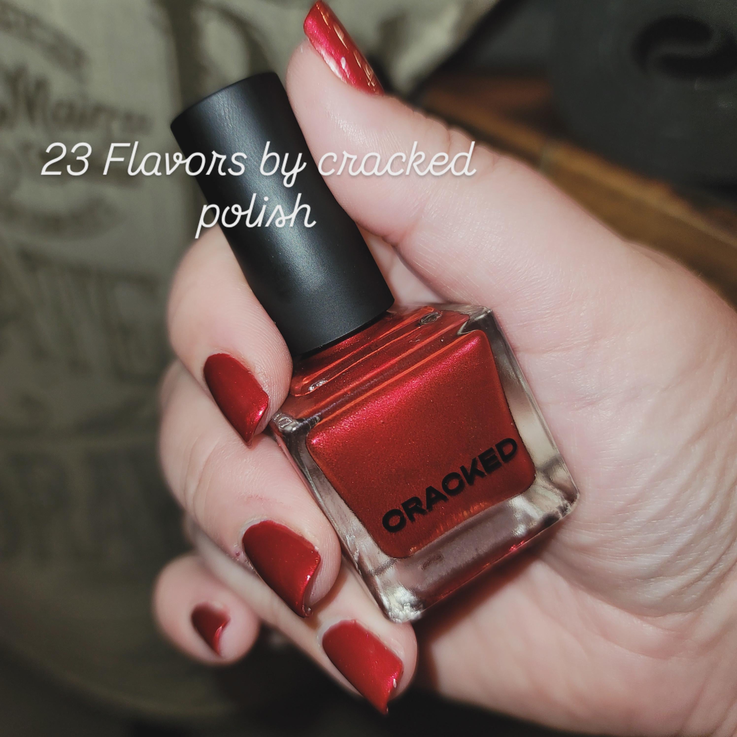 I just got my 1at order from Cracked polish and i knew i was going to like it but these are way better then i could have imagined. This photo is 23 flavors from Cracked with vibrant scents hard and fast on top. My question is….does anyone know or have wicked root from Cracked and is it the same style finish? Or what orher colors do you have from cracked with this shine? Would this be a metalic finish or would you call it something else?