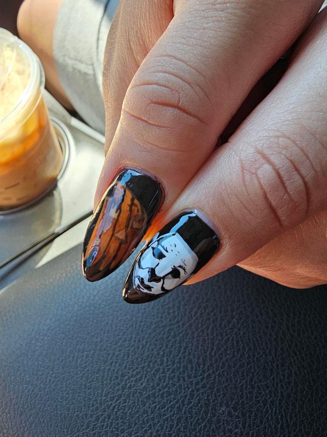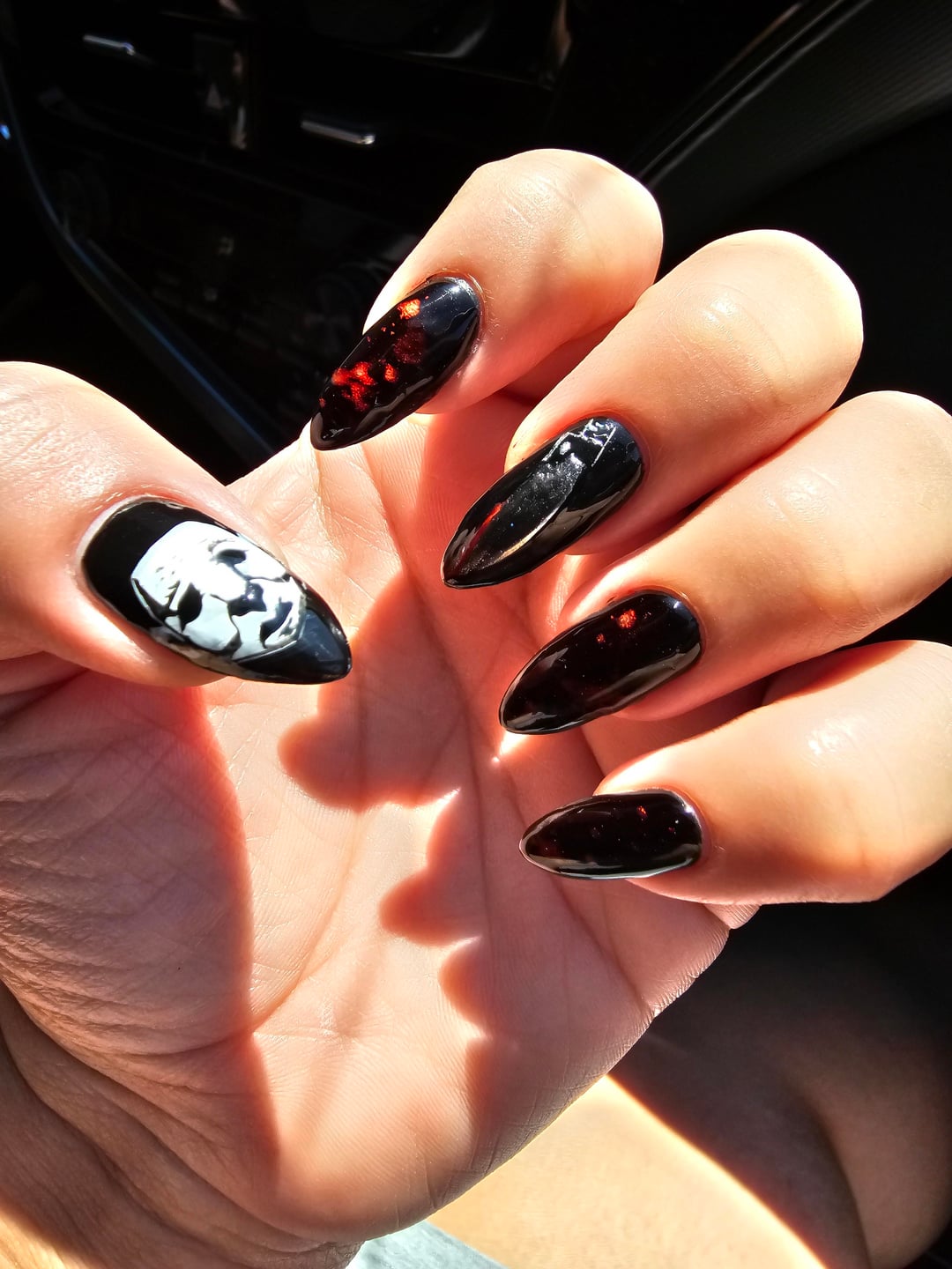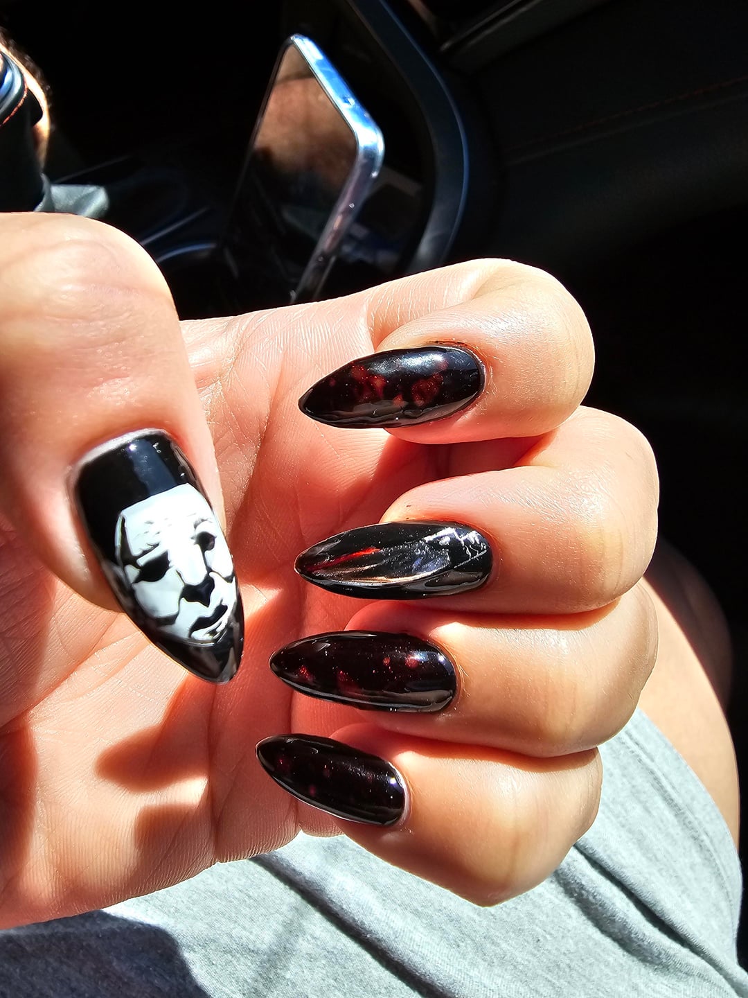 Shout out to my nail artist. These are my natural nails with a hard gel overlay. Halloween is my 2nd favorite movie. My nail tech went off. by b_reyes