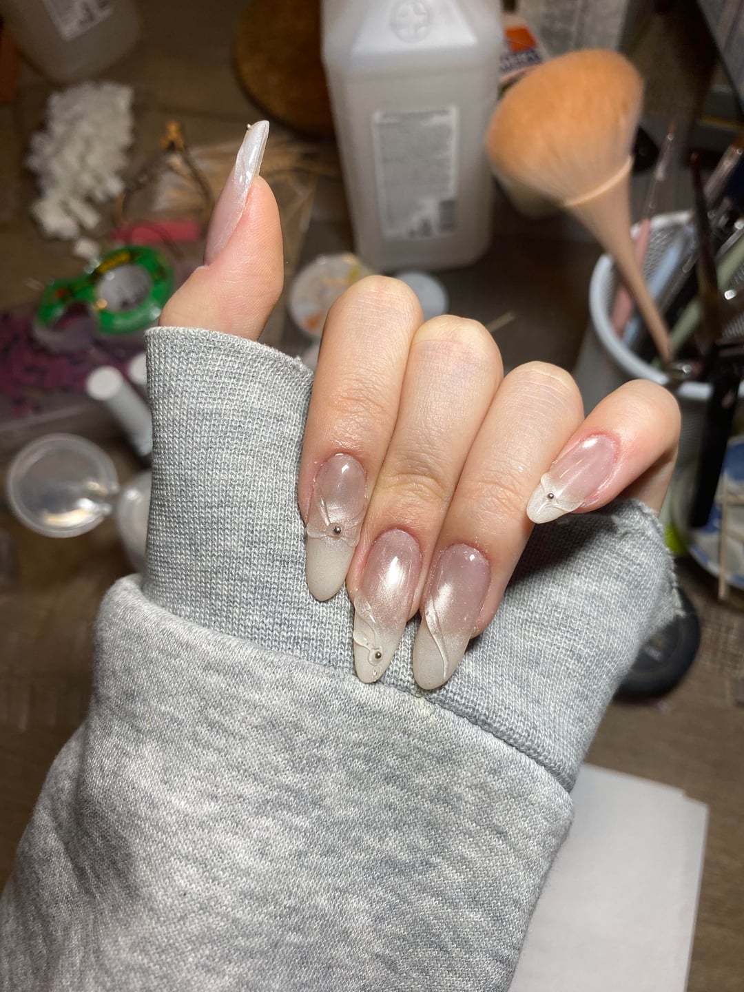Used pat gel for the tip and a nude-ish cateye 🩷