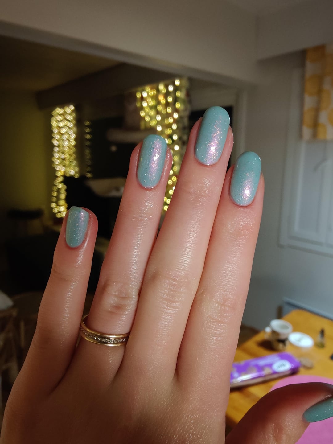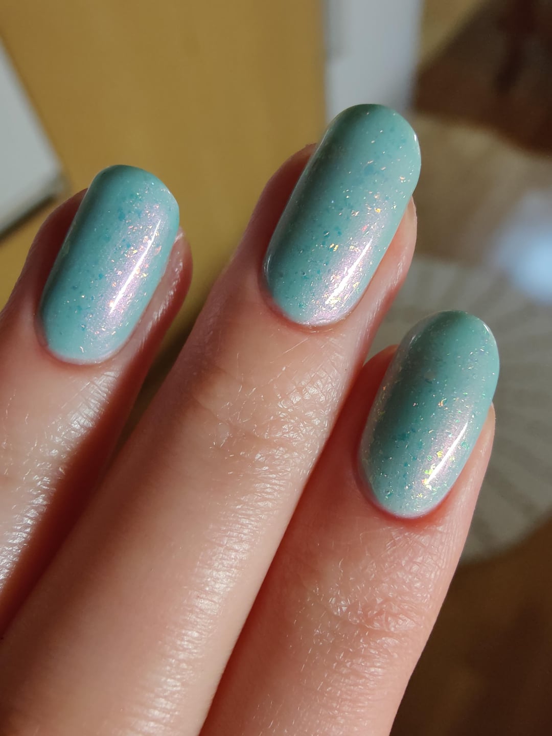 I did mooncat's Earth to gaia (3 coats) topped with Holo Taco's Solar unicorn skin. It looks gorgeous to meš I just wish I had a better light or natural light to photograph it betterš