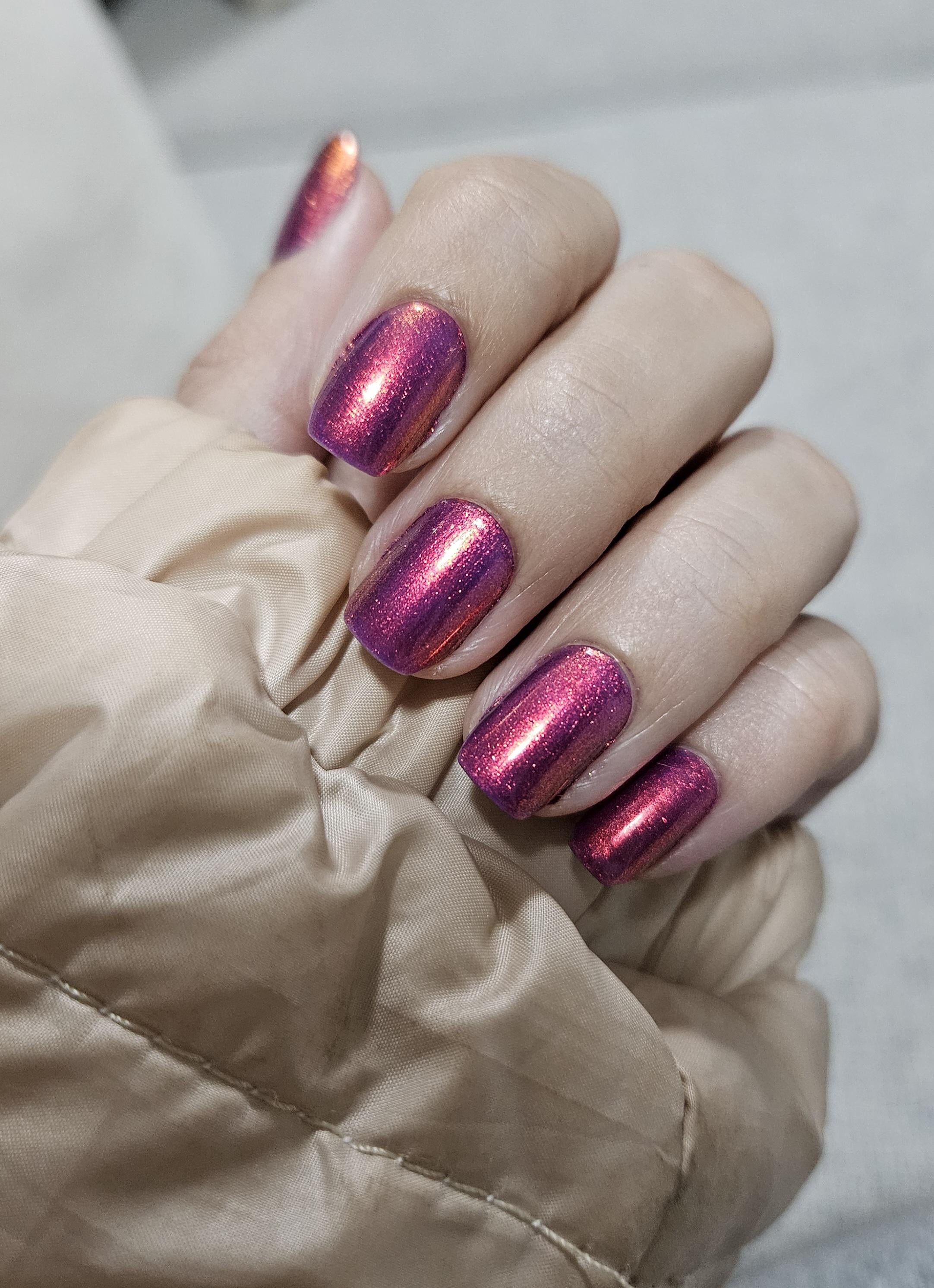 Phoenix Indie – Unexpected Magic (two coats). Mohda gel effect top coat.
