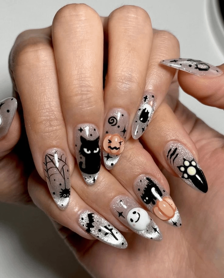Omg I love these and I think it finalllyyyyyyy gave me inspo for my Halloween set! Just to do a white cat eye as the base for the design I was thinking of already. These are so cute!!