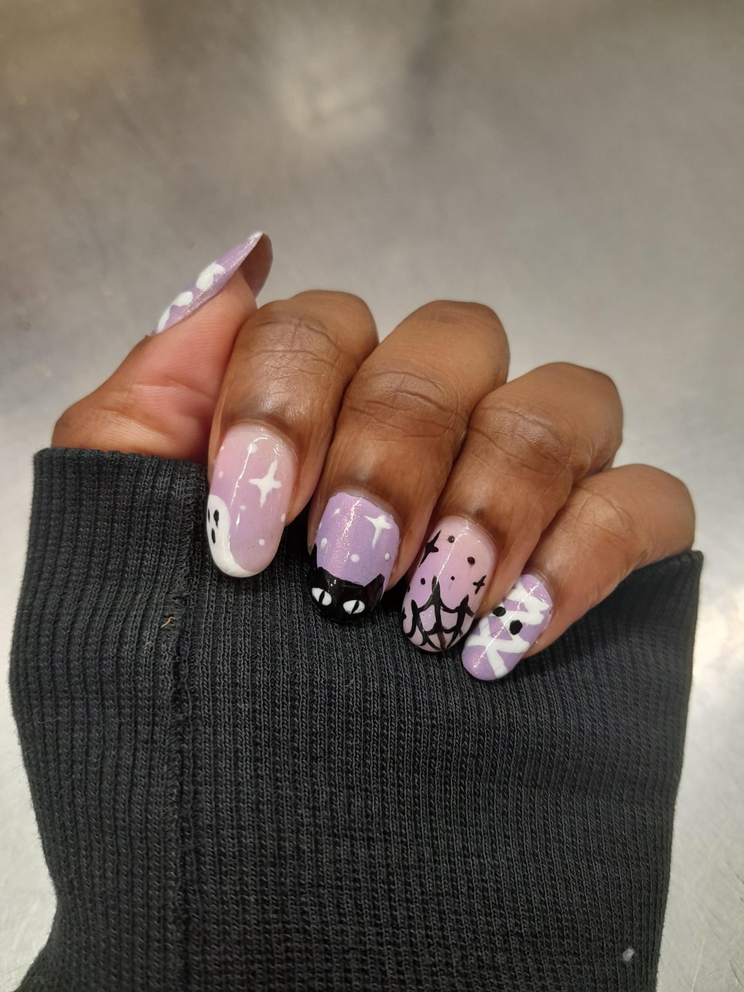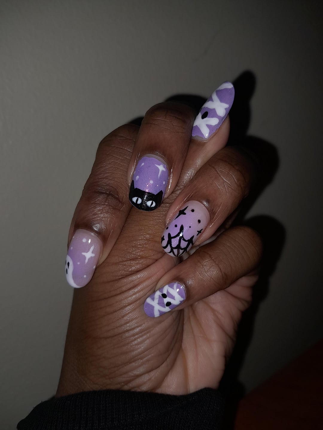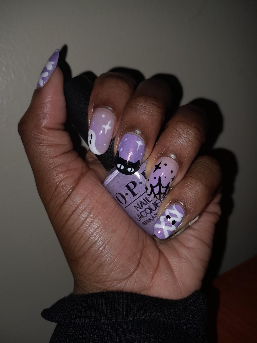 Kicking off the second week of October with these purple Halloween themed nails π This set took me around 3 hours in total to complete. Top coat unfortunately smudged some of the details, but other than that, I have to say that I'm really proud of how they turned out. I think this is one of my best sets yet. ππ«ΆπΎπ