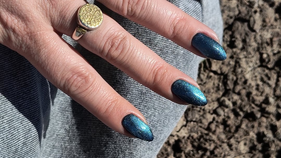 Tried the “cat eye” effect for the first time. My friend did this design using a magnetic polish ✨ I’m obsessed with how it catches the light! by MorenaSix