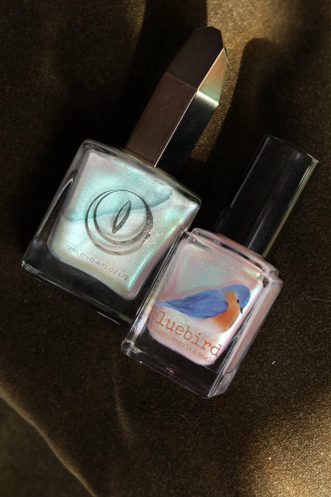 Right: 2 coats Bluebird Lacquer Best of Cluck