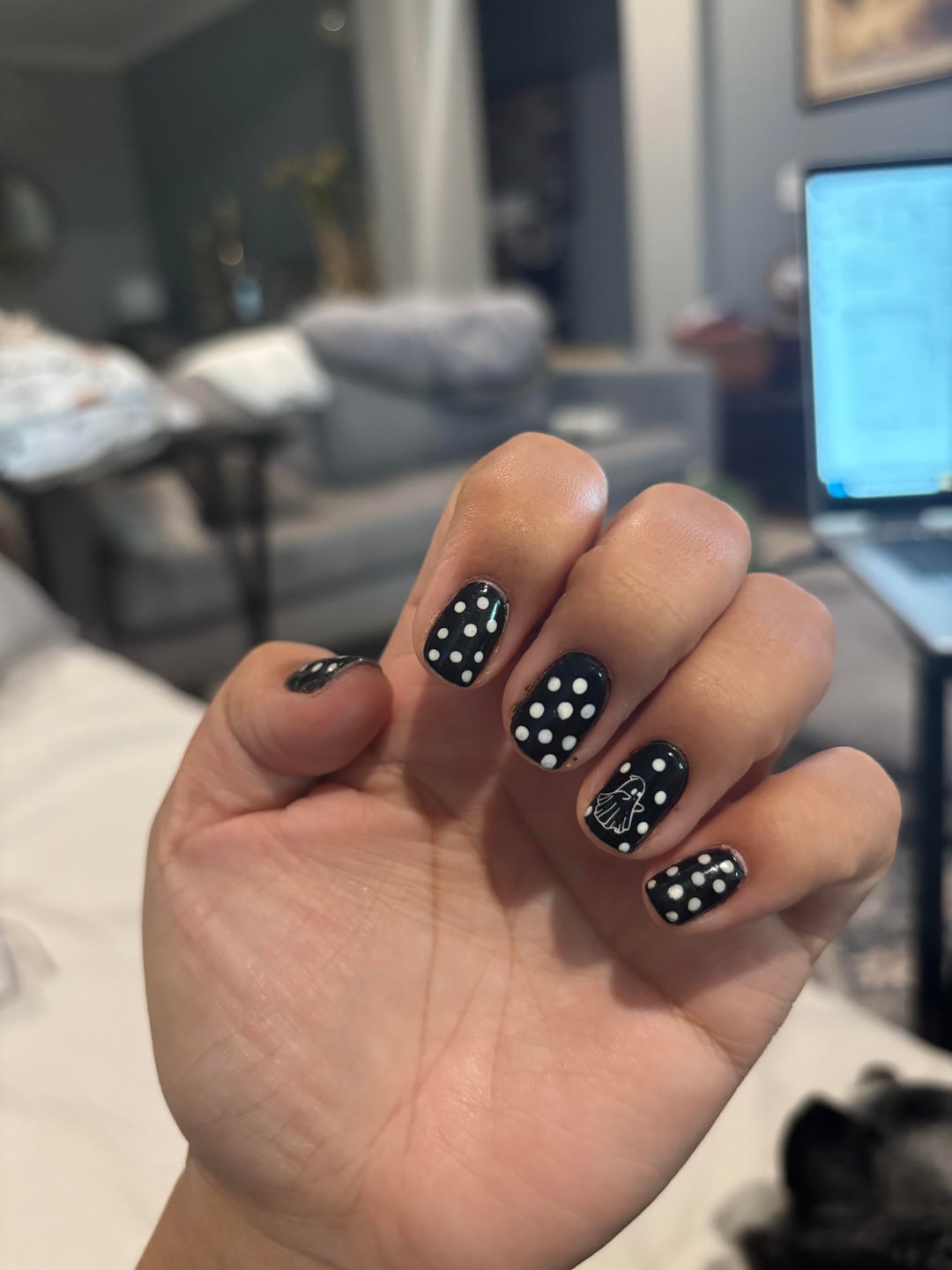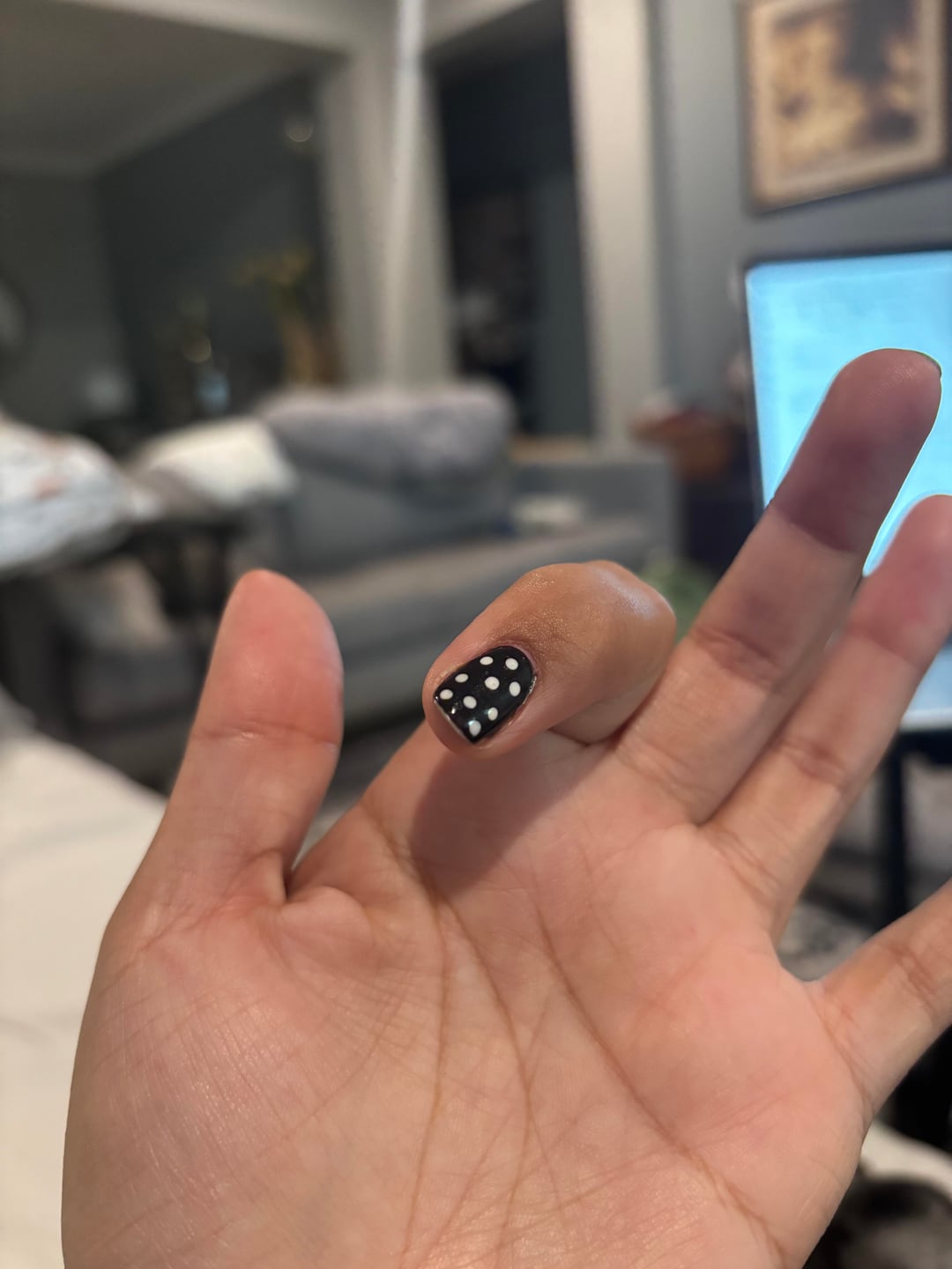 4. Sally Hansen xtreme wear white on (some polish thinner added for the polka dots)