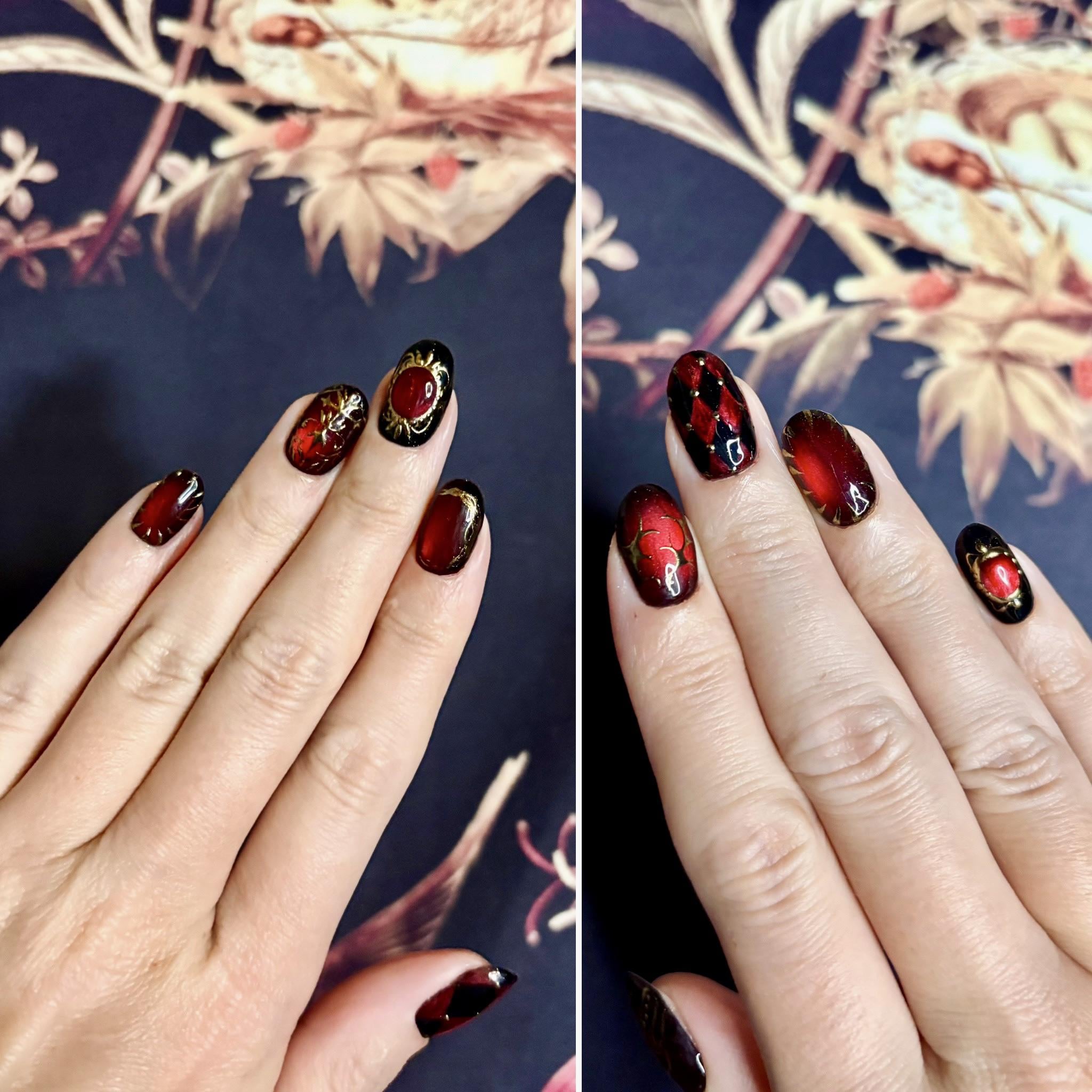 asked my nail tech for a baroque baddie vampire aesthetic on my natural nails and they did not disappoint! by hexenwolfhollow