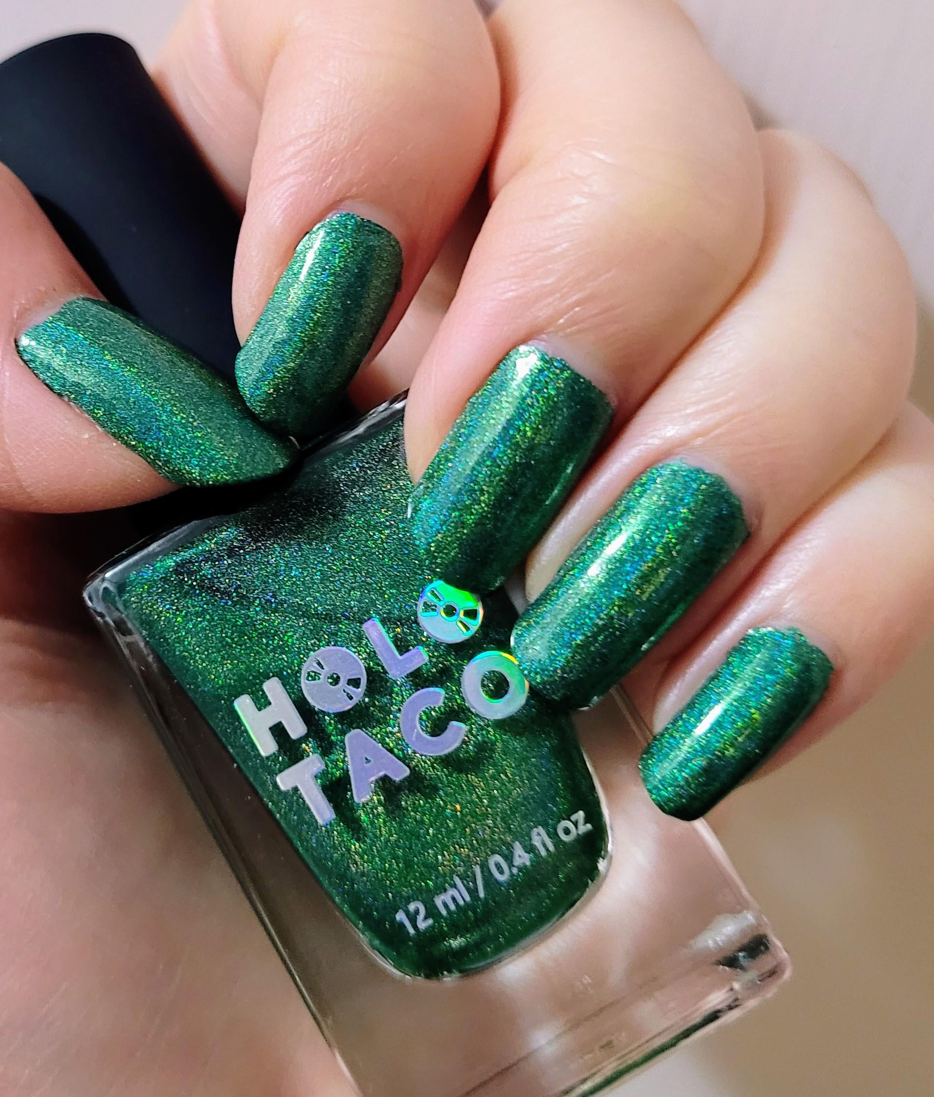 Base- Holo Taco quick dry base Color polish- Holo Taco green taffy Top coat- Holo Taco Glossy Taco by evil_dumpling256