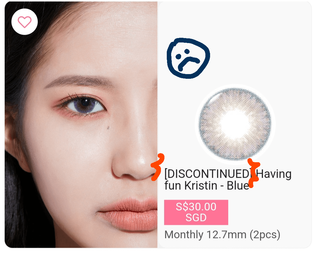 Recently I found out my favourite pair of contacts (Having Fun Kristin, blue). I've been to find a dark blue/indigo monthly pair, without a distinct dark outer ring if possible.