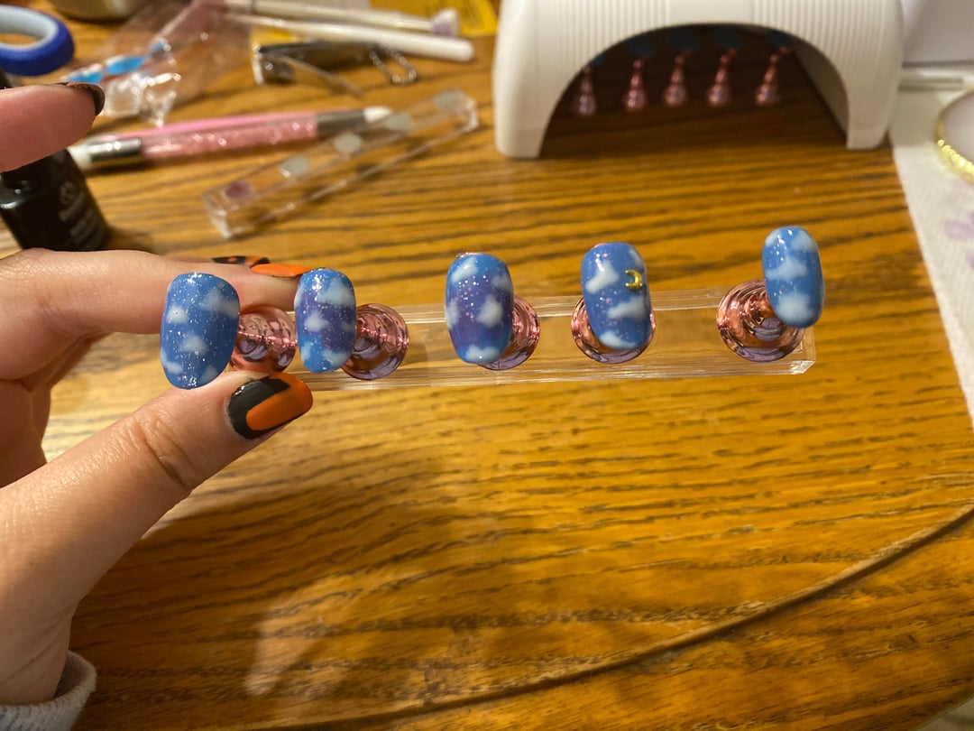 I just recently dove into the world of nail art and finally got some tools and press ons to test things out.. this is the first set I’ve done, I’ll admit I tossed a few nails until I got it how I wanted, but I’m so happy!