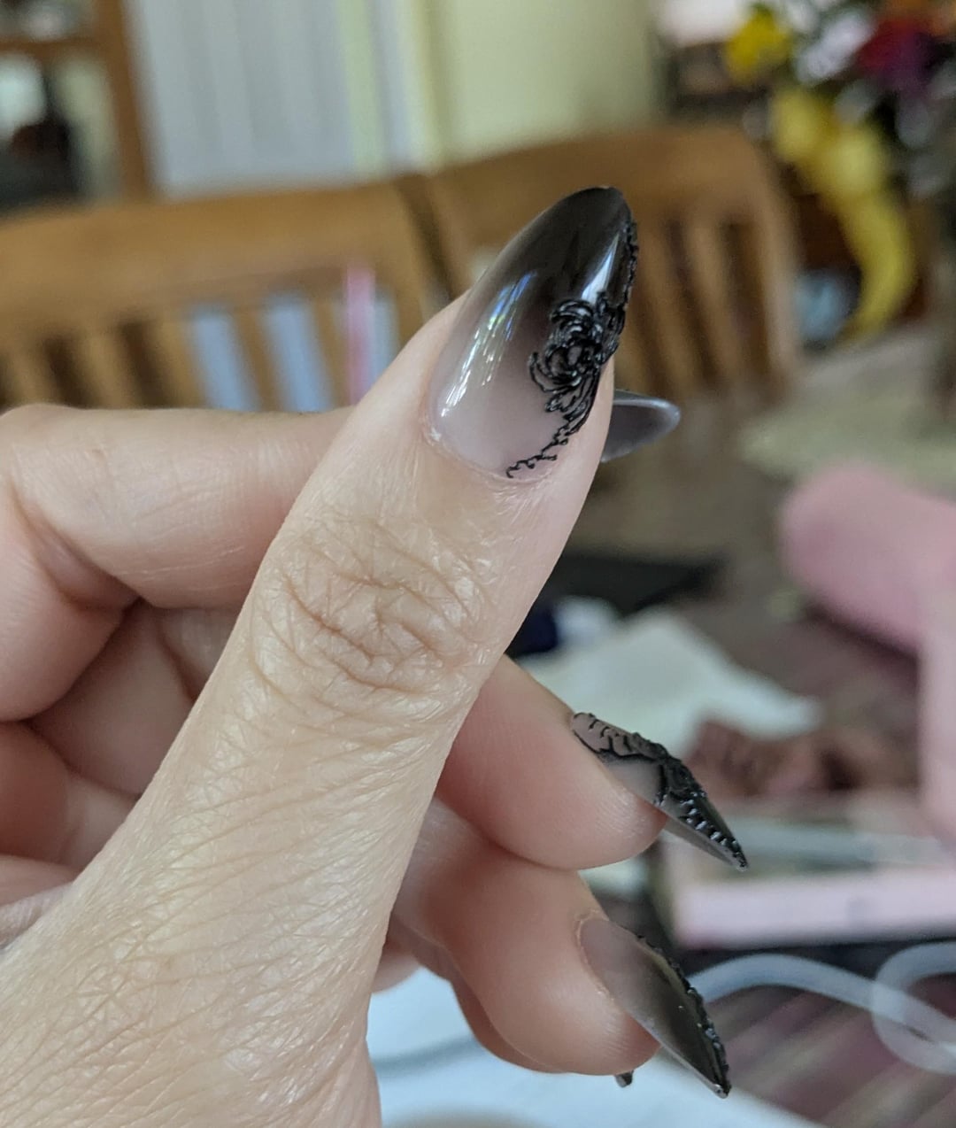 My entire life I've tried press-ons only to be disappointed, they never fit my unusually small nails! When I would get my nails done, the nail techs would always make comments about how small my nailbeds are. And designs are very limited. I bought a beautiful kiss set the other week, and continued to be disappointed. Idk what compelled me, but I decided to try Glamnetics out and FINALLY!! A brand that has smaller nail sizes! I have to use the very smallest (size 14) for my pinky and it was just right!