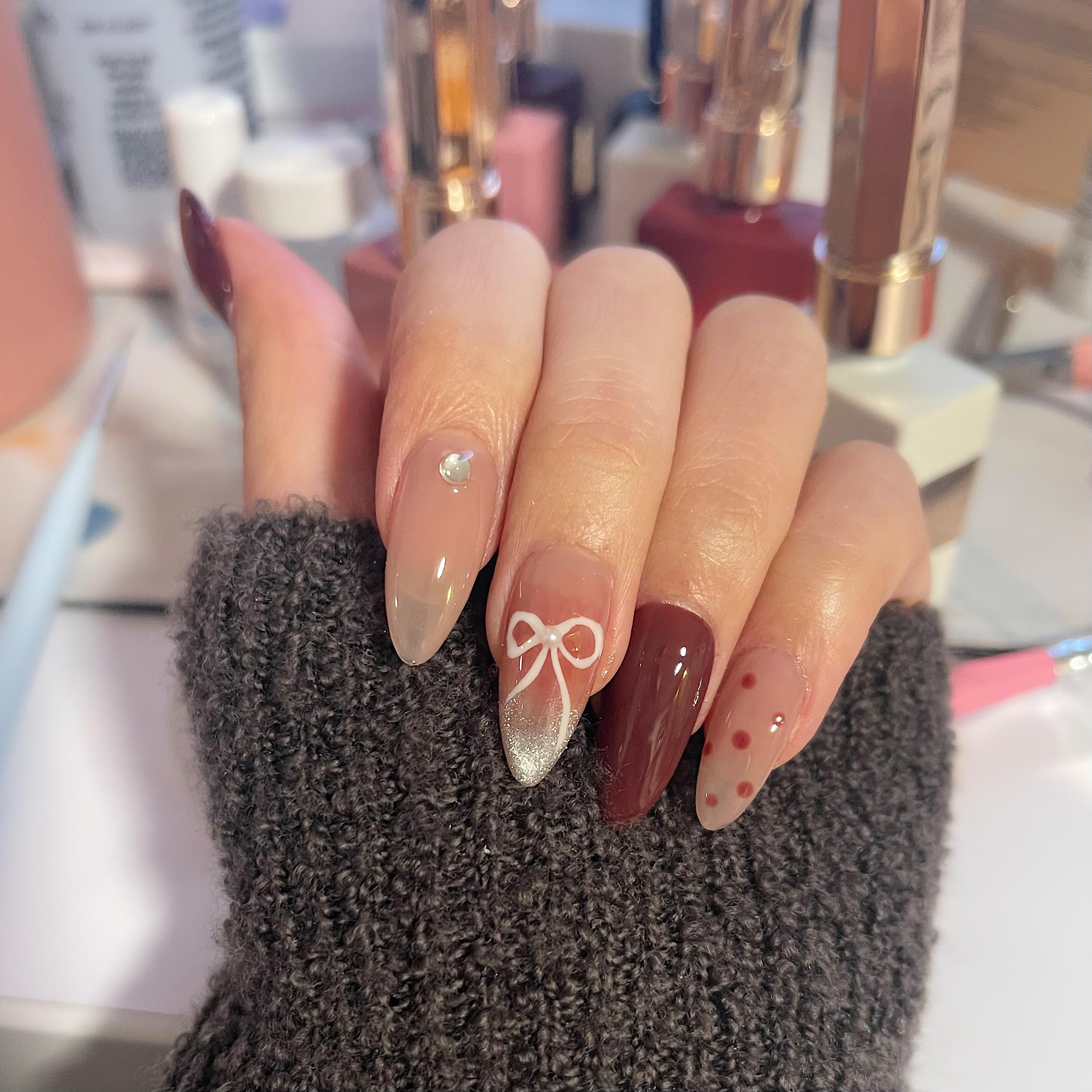 First time doing GelX… and at home! Fall burgundy ❤️🍂🍁