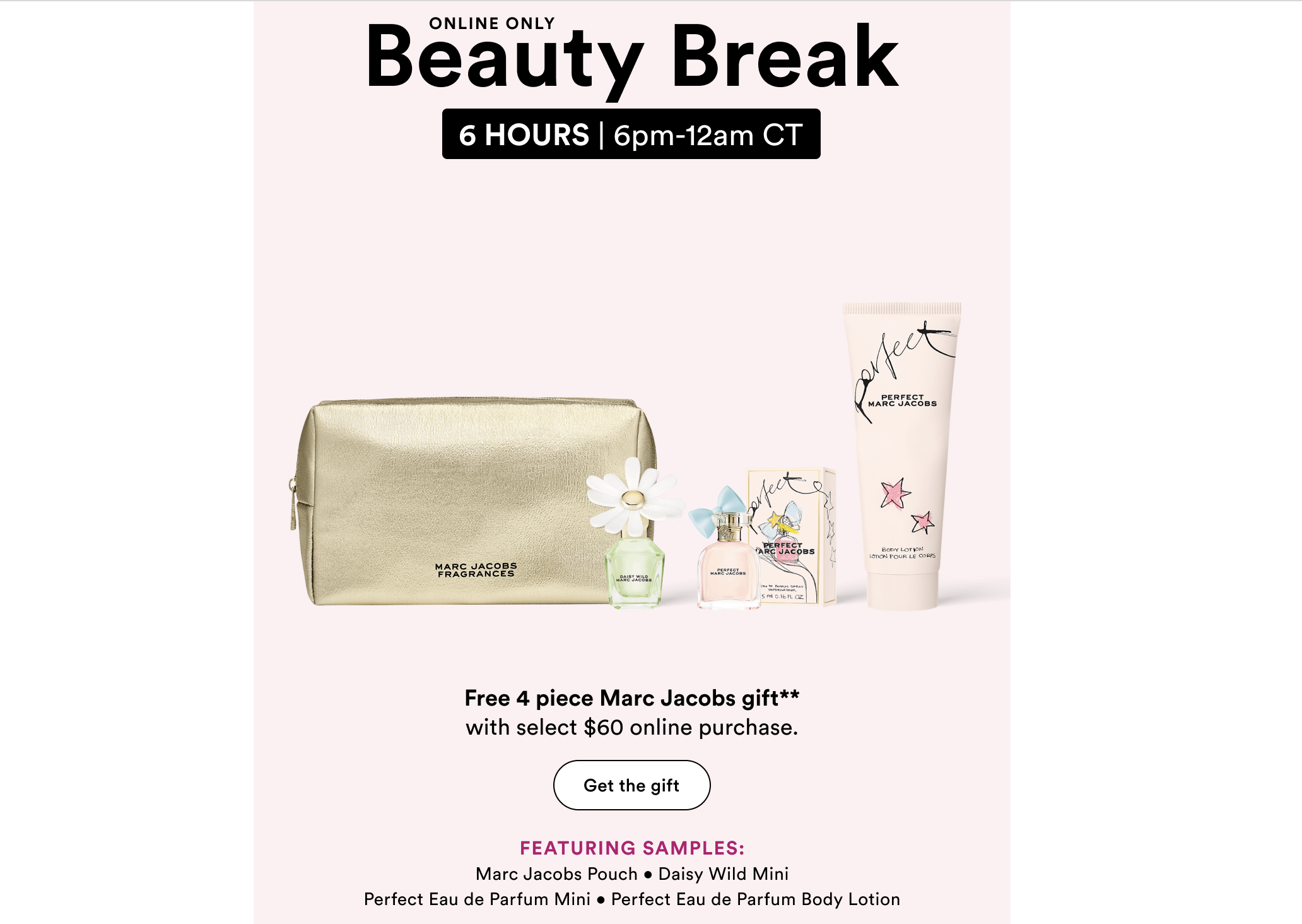Ulta Beauty Break: **Free** **4 Piece Marc Jacobs Gift** with **$60** Online Purchase