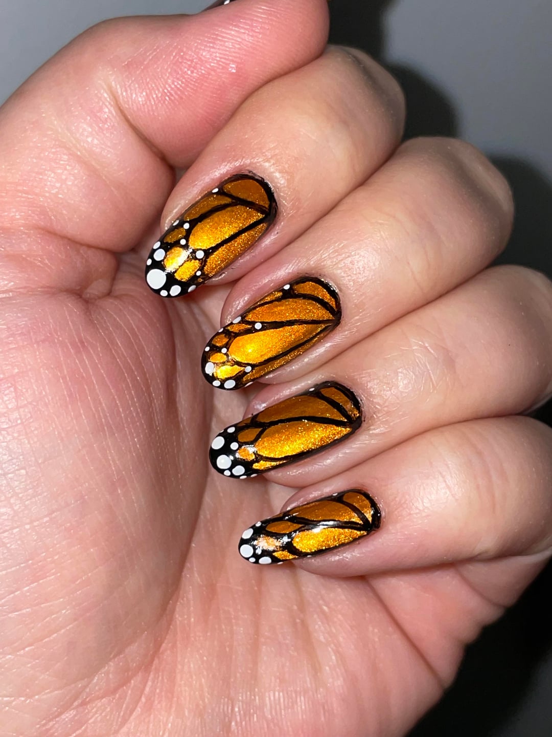 Still my second ever full hand manicure of a free hand butterfly wings; but I think it looks great!