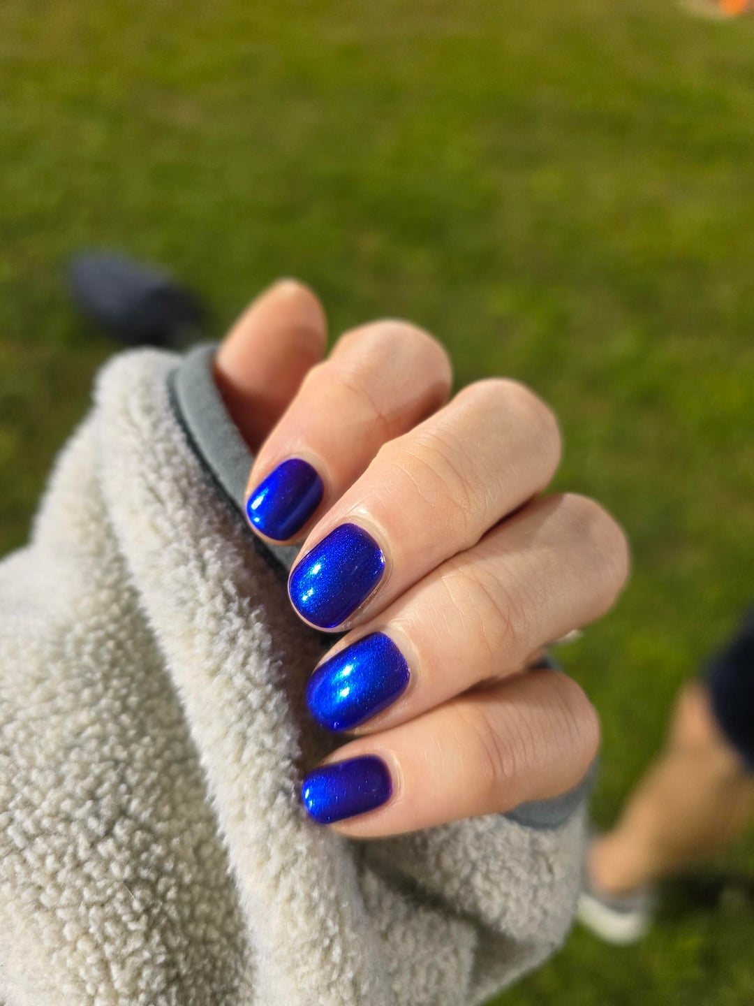 BrrrrrrItsColdUpHere on October 20, 2025 1:34 pm This is three coats of “what a nightmare” from Polished for days. KB Shimmer Fillin Groovy Base and KB Shimmer QD Topcoat Clearly On Top. Really love how chrome-y this looked on the nail!! Such a gorgeous blue 💙