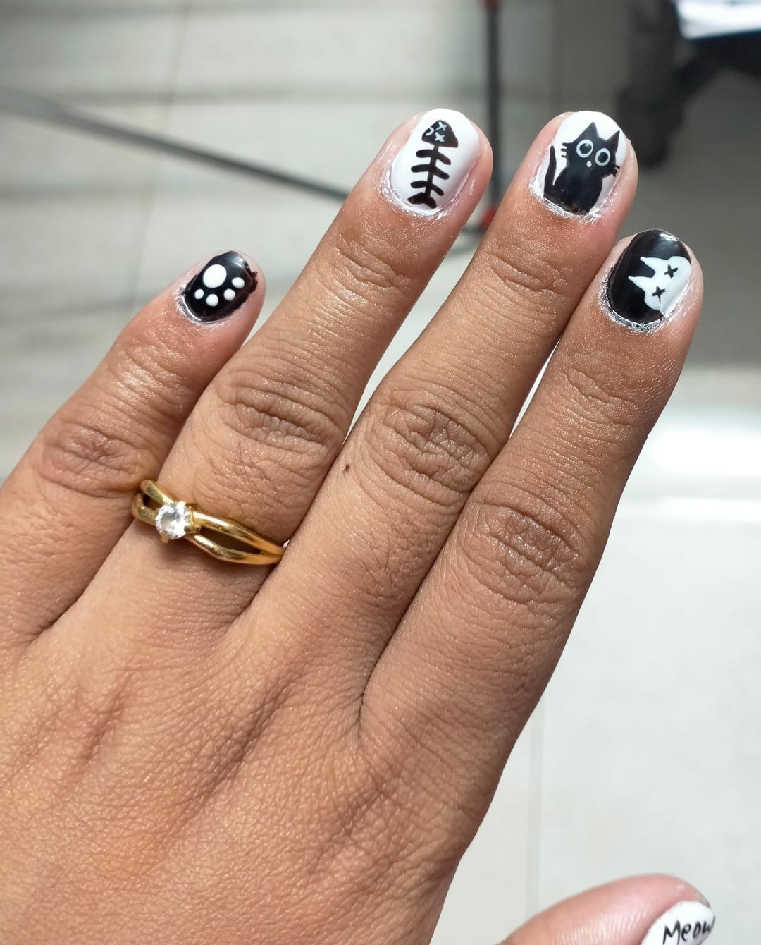 Got tired of longer acrylics so decided to paint on my natural nails. I love cats!!! I've been experimenting a lot with my nails recently. I did my acrylics myself for the first time a while back and posted here. This is my first time painting art on my nails. What do you all think?