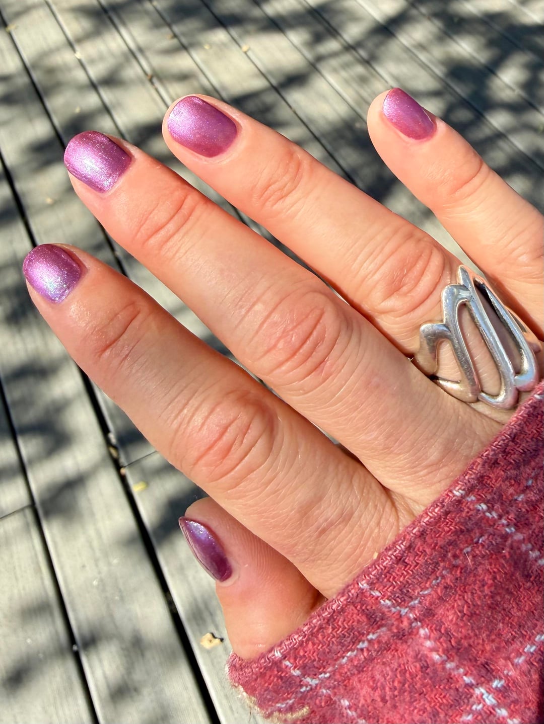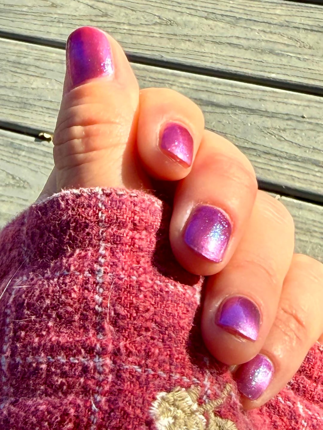 I love how weirdly edgy yet pretty this polish is! It feels almost, just barely prugly, but in the best, most flattering way! Tried to capture it in various lighting here.