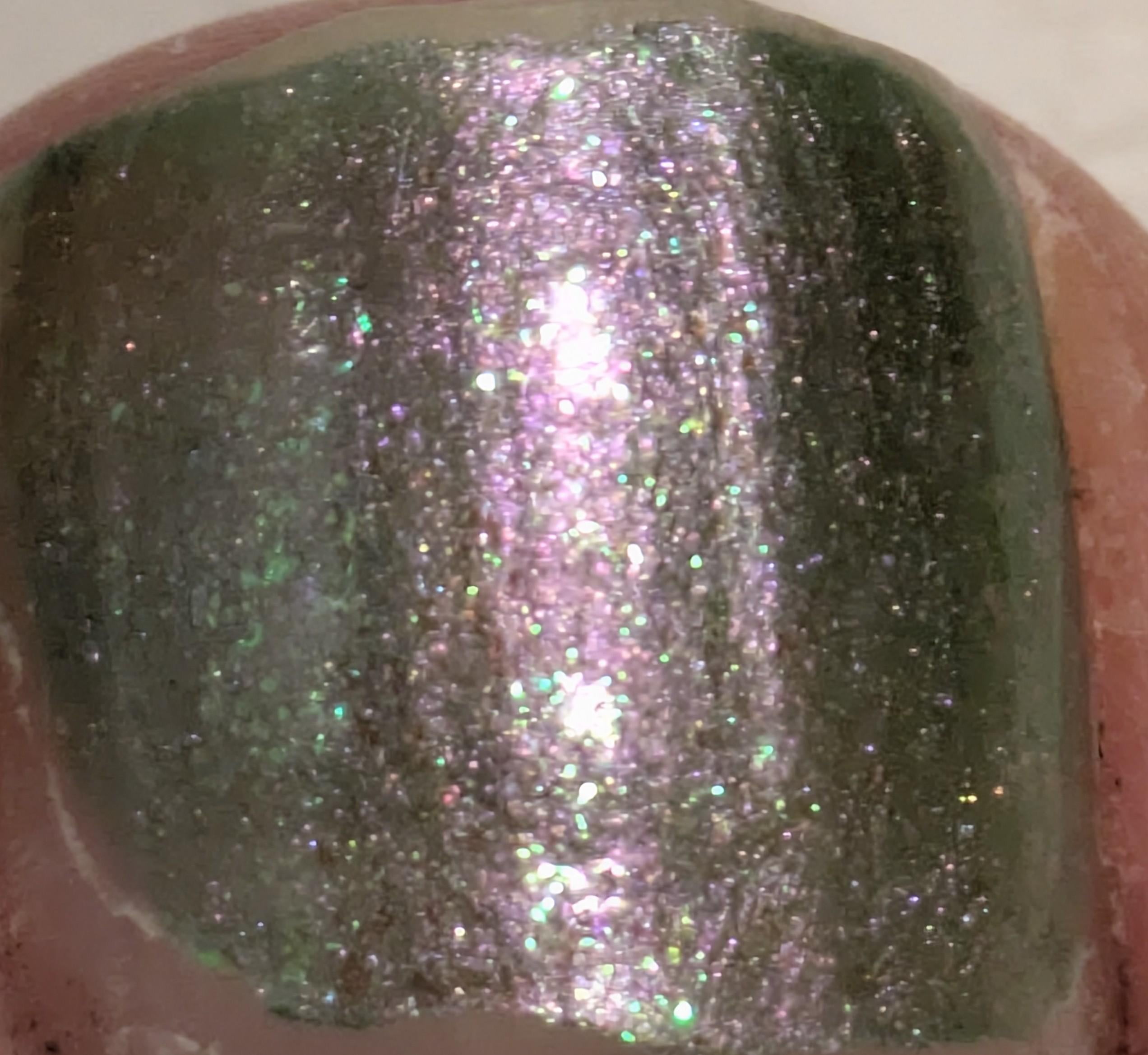 So got a pedicure about a month ago and didn't take a picture of the polish because it didn't look super special in the bottle, but the nail lady did one single coat on my toes and Ive been trying to find it ever since. believe it was an OPI by what remember of the bottle but could be completely wrong in that… It's this gorgeous seafoam with green and pink shimmers and NEED to find it. Apologies for the bad photo| didn't want to post a photo of my feet so just cropped it much Imfao