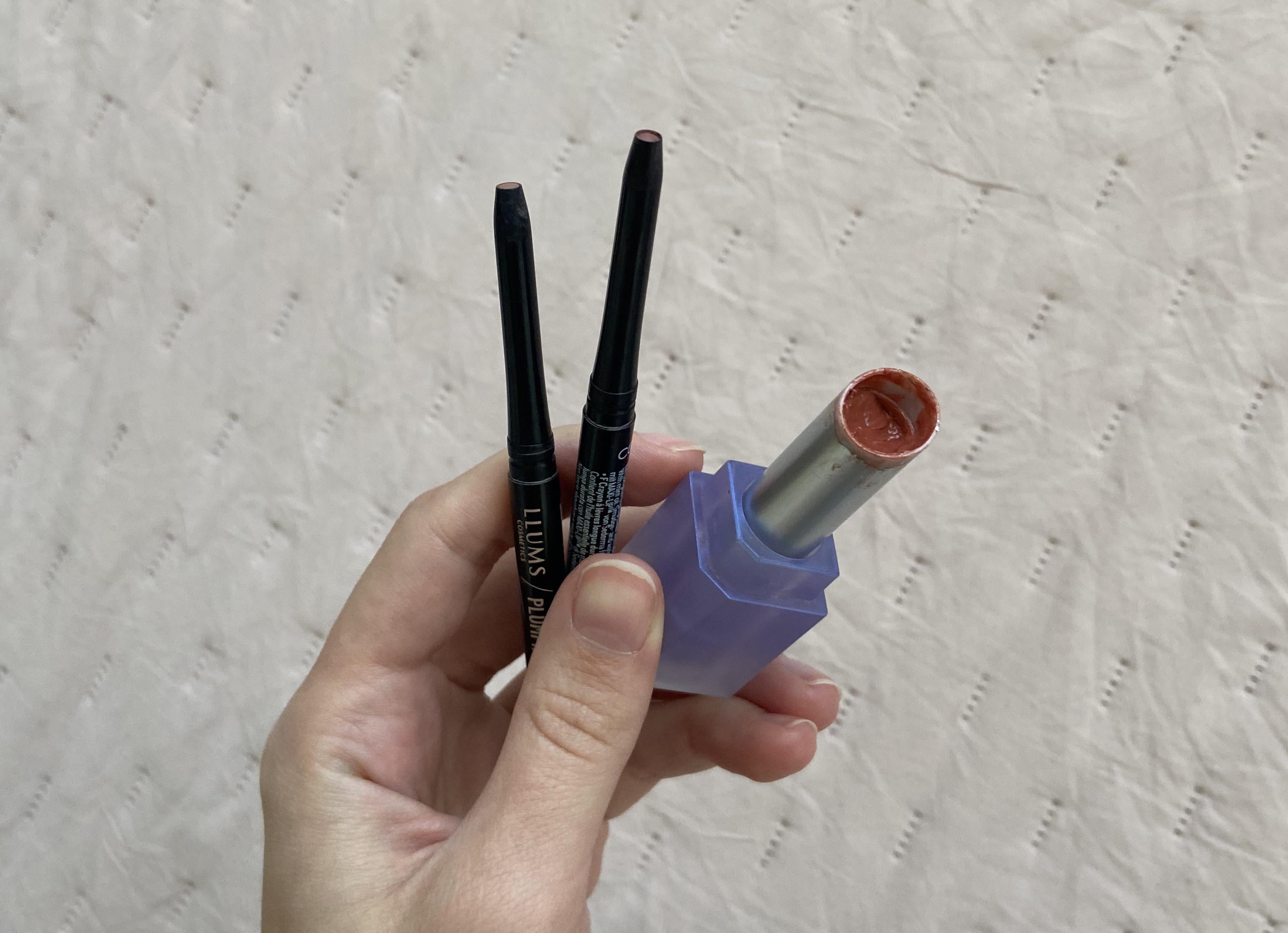 llums lipliner in cinnamon, catrice lipliner in 040, uhue mirror lipstick!