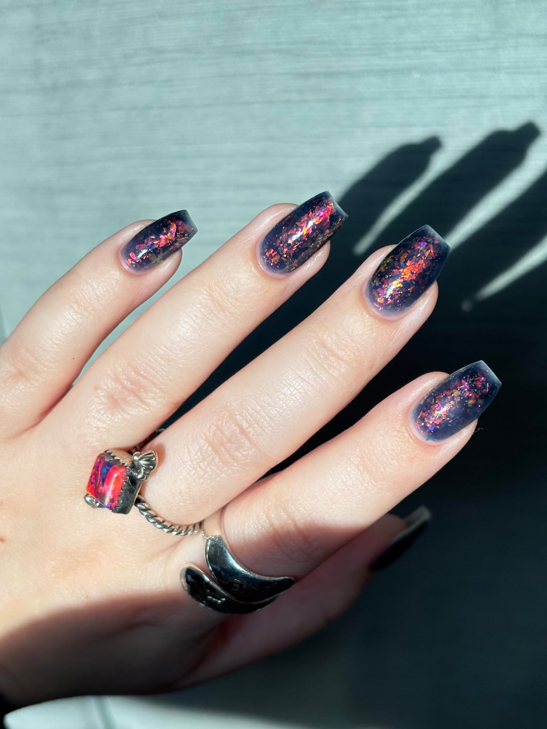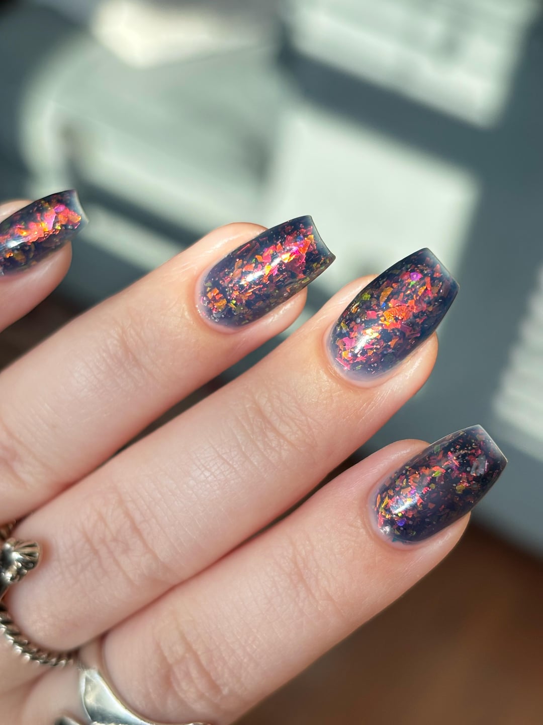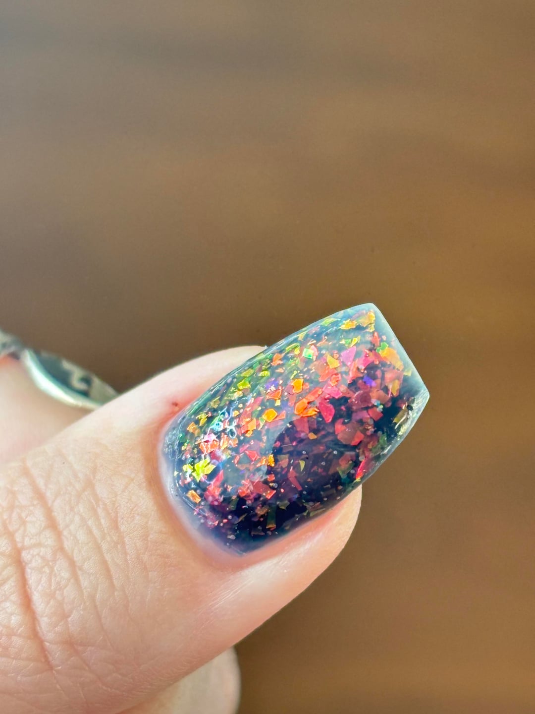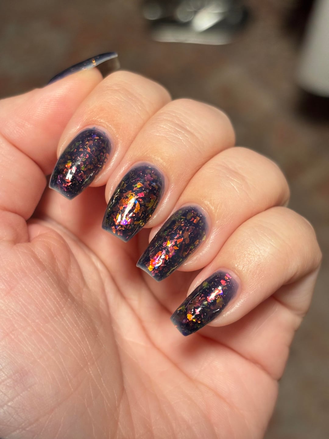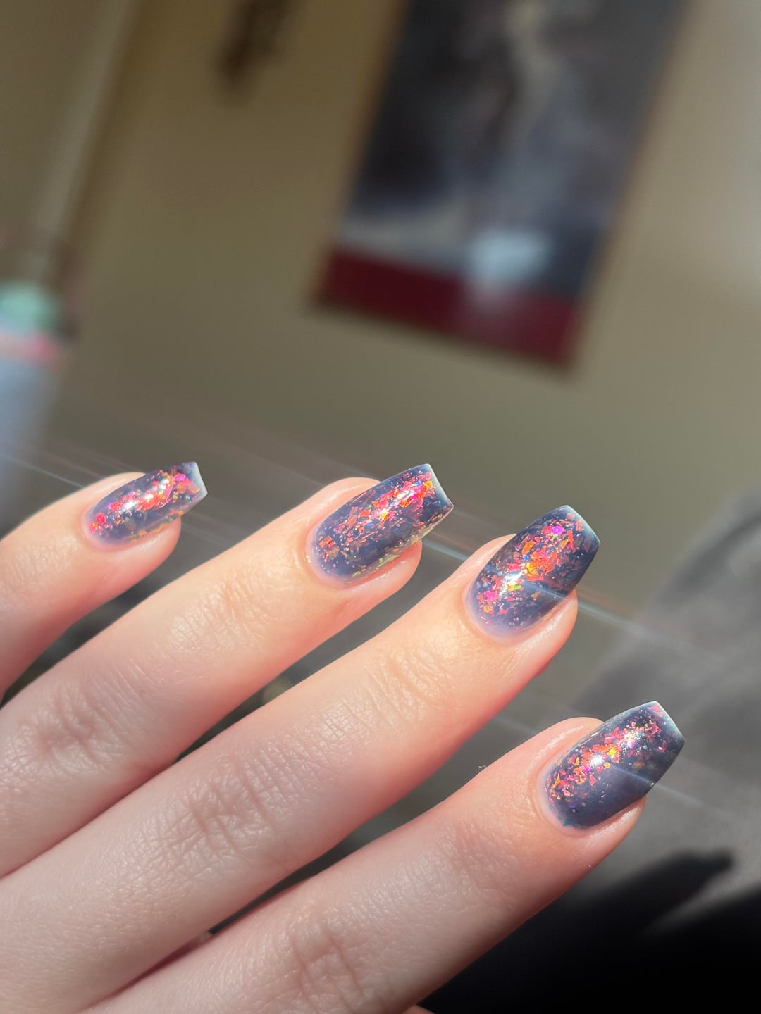 I am in my flakie era as well, especially thermal flakies. This polish is gorgeous on you!