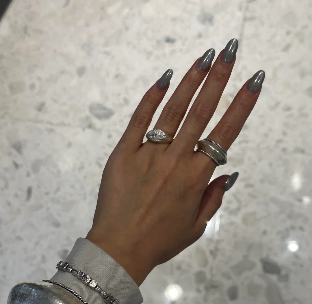 It's been forever since I've loved my nails so much! So minimal and icy, and how perfectly it goes with all my rings!! by automotivejesus