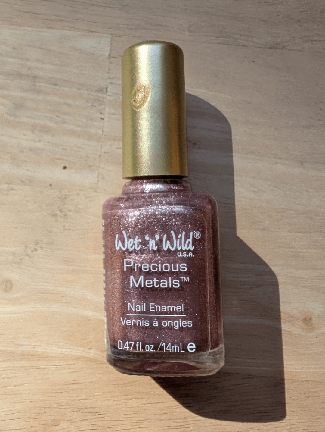 I have no idea how old this Wet N Wild Precious Metals "Pink Shimmer" polish is, but I wore it when I got engaged earlier this year! I love the color, the shimmer, and the overall effect, but I find it so hard to work with and it doesn't seem to wear very well. I feel like there must be something like it out there with a better formula & brush! Thanks in advance for any ideas you have.