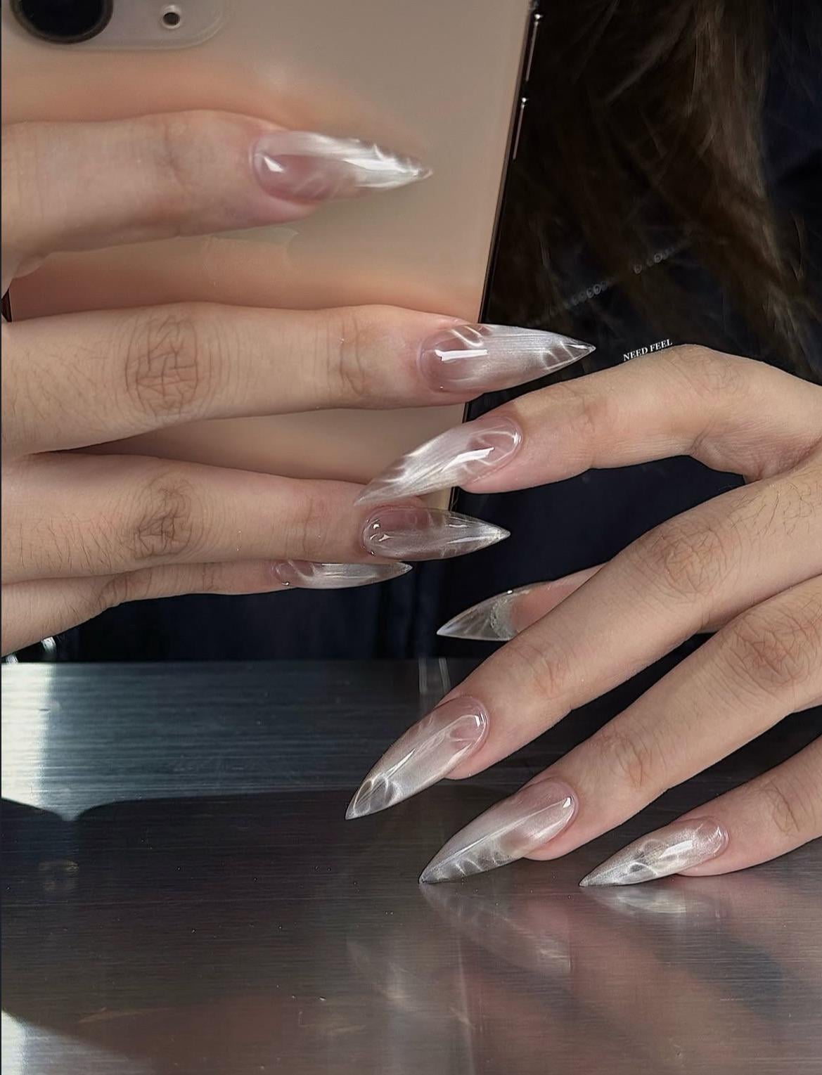 It’s a white/silver/pearl magnetic polish with round magnetic balls to make the design. It looks like the polish wasn’t applied to the whole nail, but you would use these types of magnets to make the ovals.