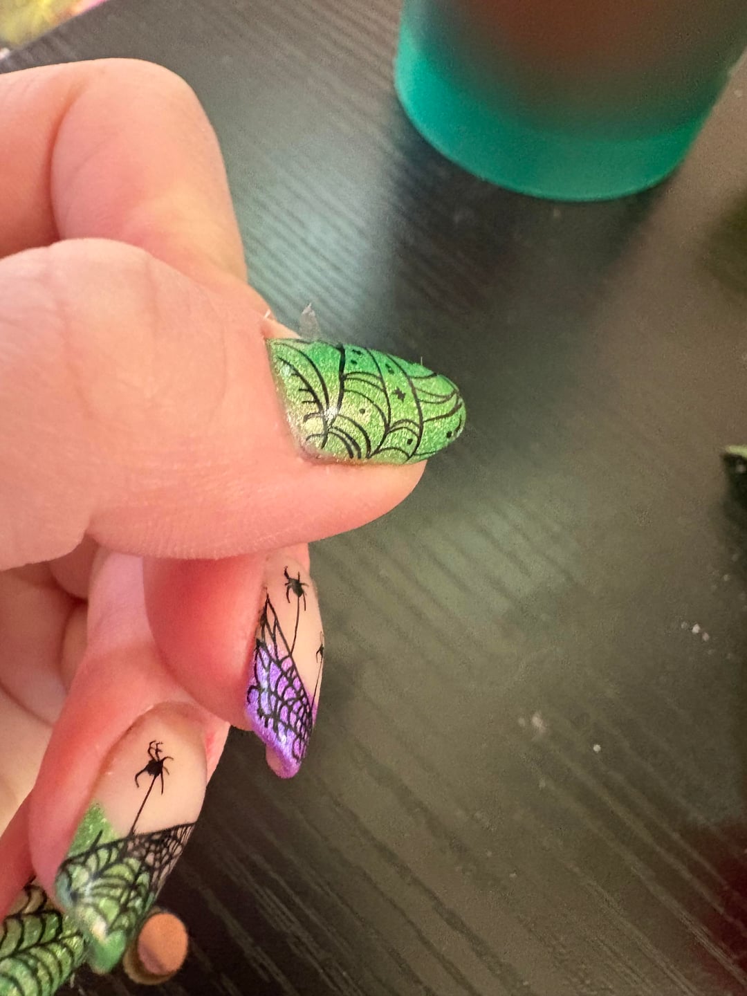 I’ve only been occasionally stamping for a few years so I’ve just assumed it was user error, but this is starting to drive me crazy. Everytime I stamp, I use maniology sticky base under and one of their stamping top coats (original or water based) over the top and let that dry before using my usual top coat to seal it in (holo taco, vibrant scents, or, seche vite) Without fail, my top coat starts to peel after a day or two! I usually try to gently scrape off any compromised top coat and then reapply. If I don’t reapply, my stamp starts to fade off of my nails due to frequent hand washing/sanitizer use at work. Hard to see in the photos, sorry, I know…