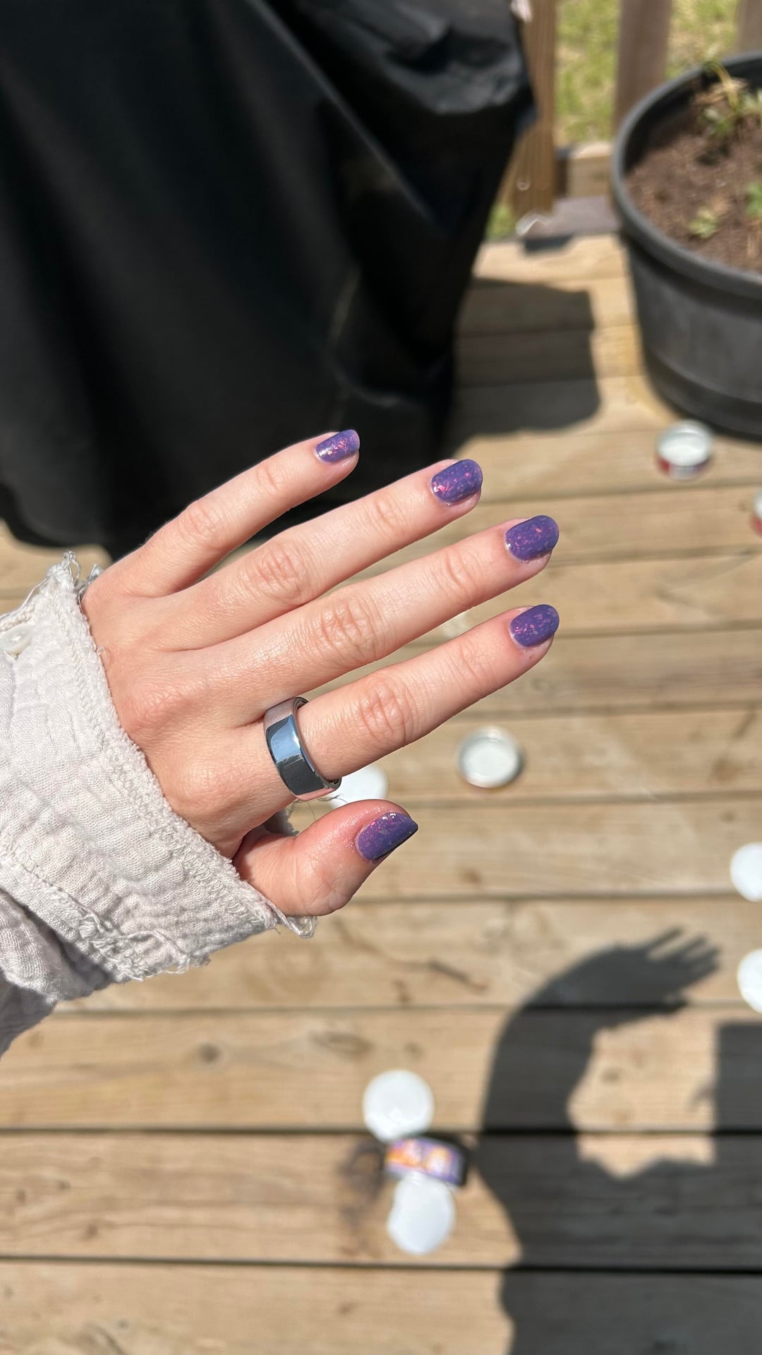 ***HYPERFOCUS RANT WARNING*** I am however really really into magnetics right now and all the different tools and such to make different designs. My favorite tool so far (because lazy) is using a magnetic lab stirrer and setting my finger on it so instead of the “glass bead” effect it does when your nail is facing the magnet, what I think the folks over in r/RedditLaqueristas call “mosaic”. My favorite finish for everything is generally in the multichrome territory because it makes my crow brain happy, and my nails are shift colors depending on the light sources available to me.