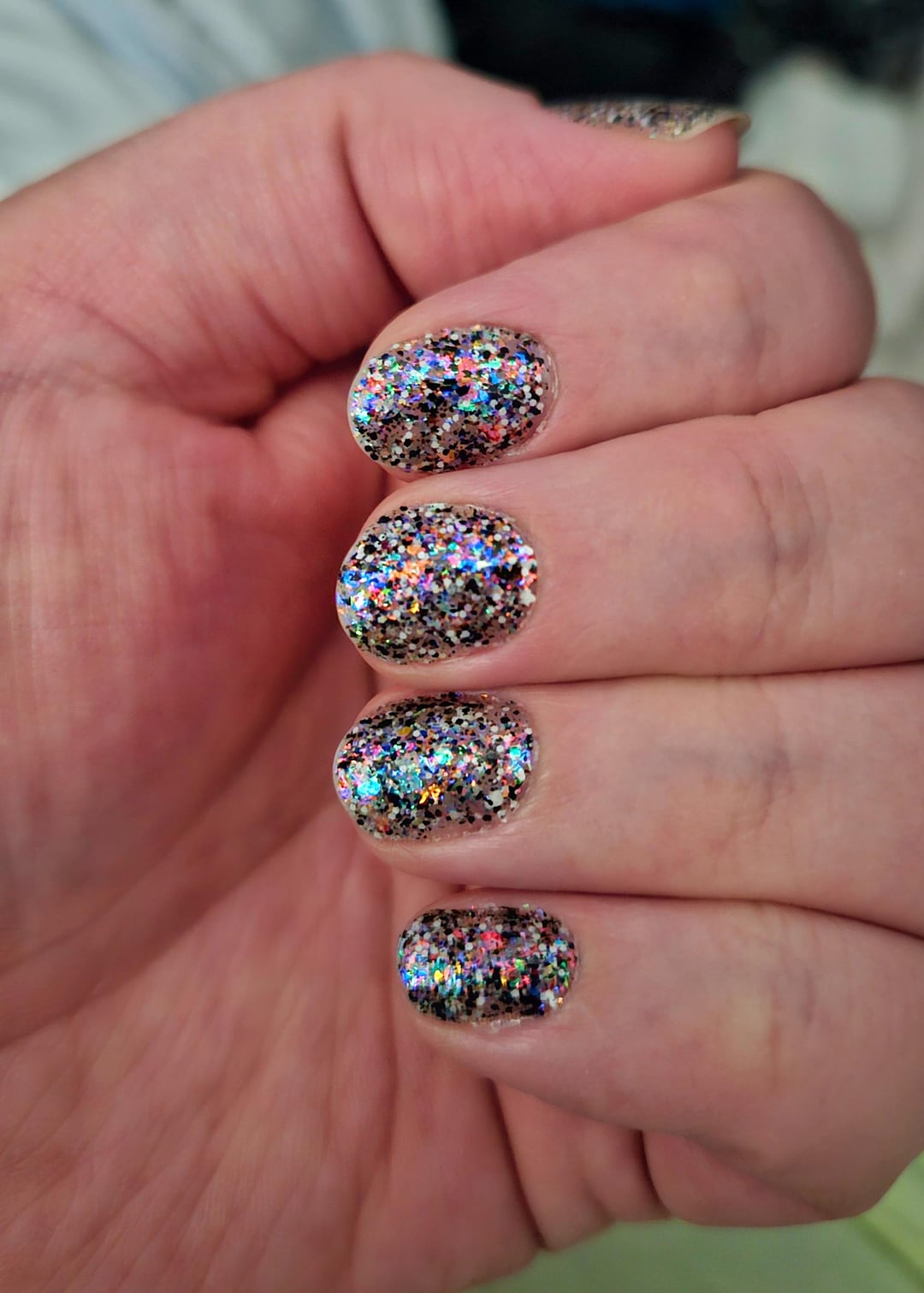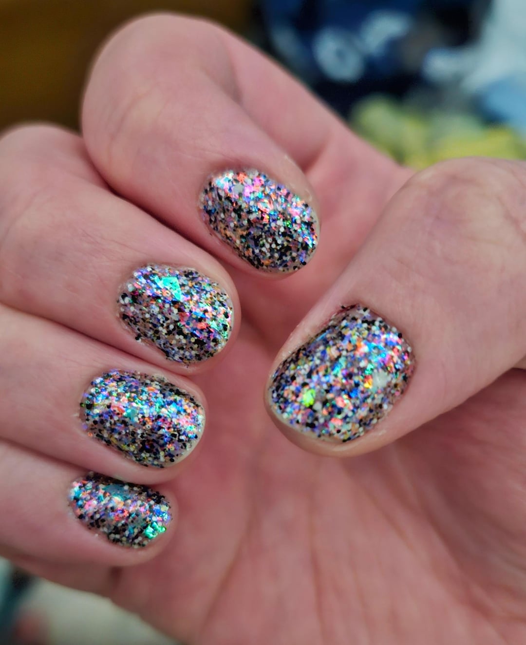 Top coat: Glisten & Glow glitter grabber, then one coat of Vibrant Scents Fast & Hard top coat