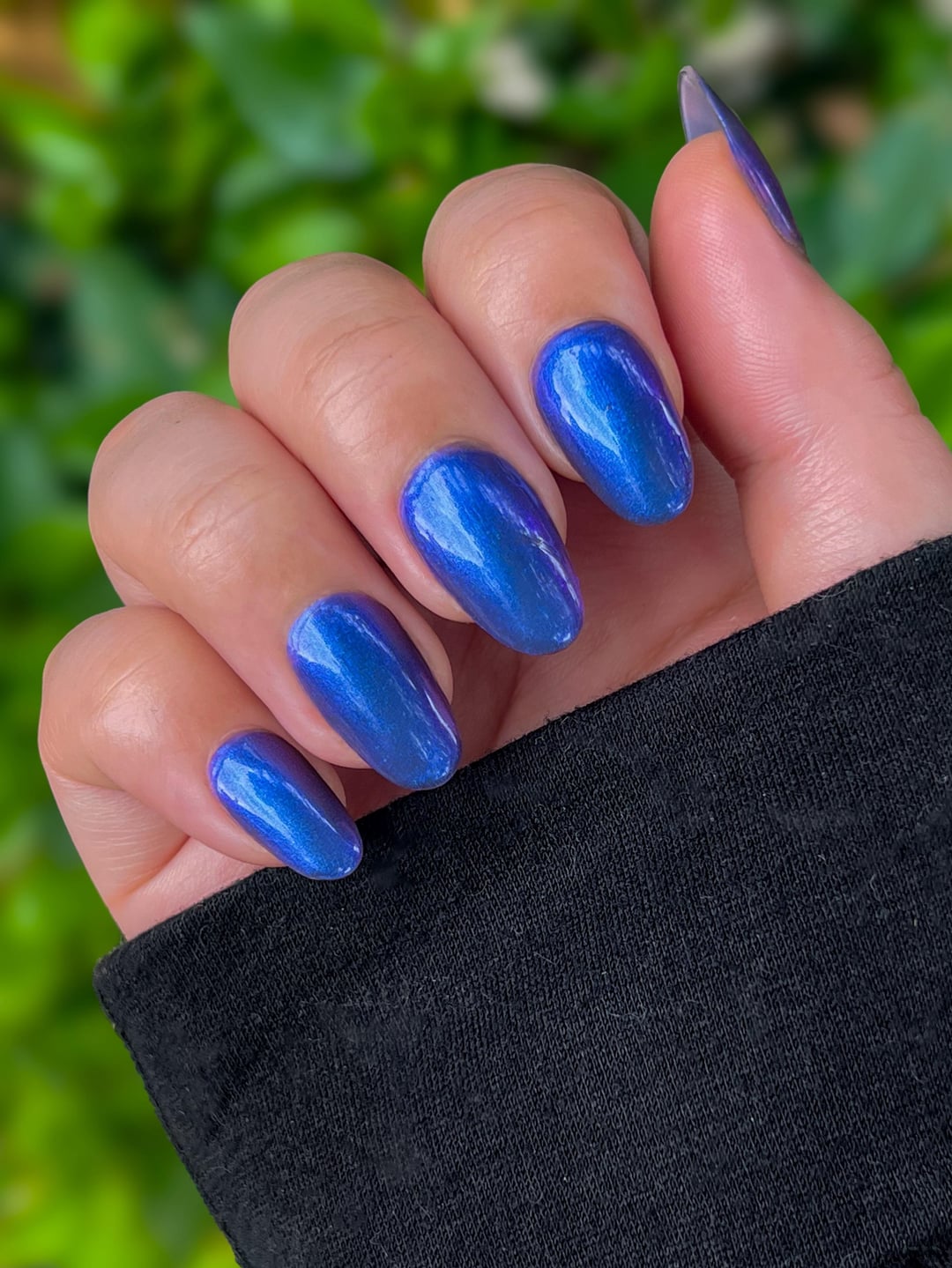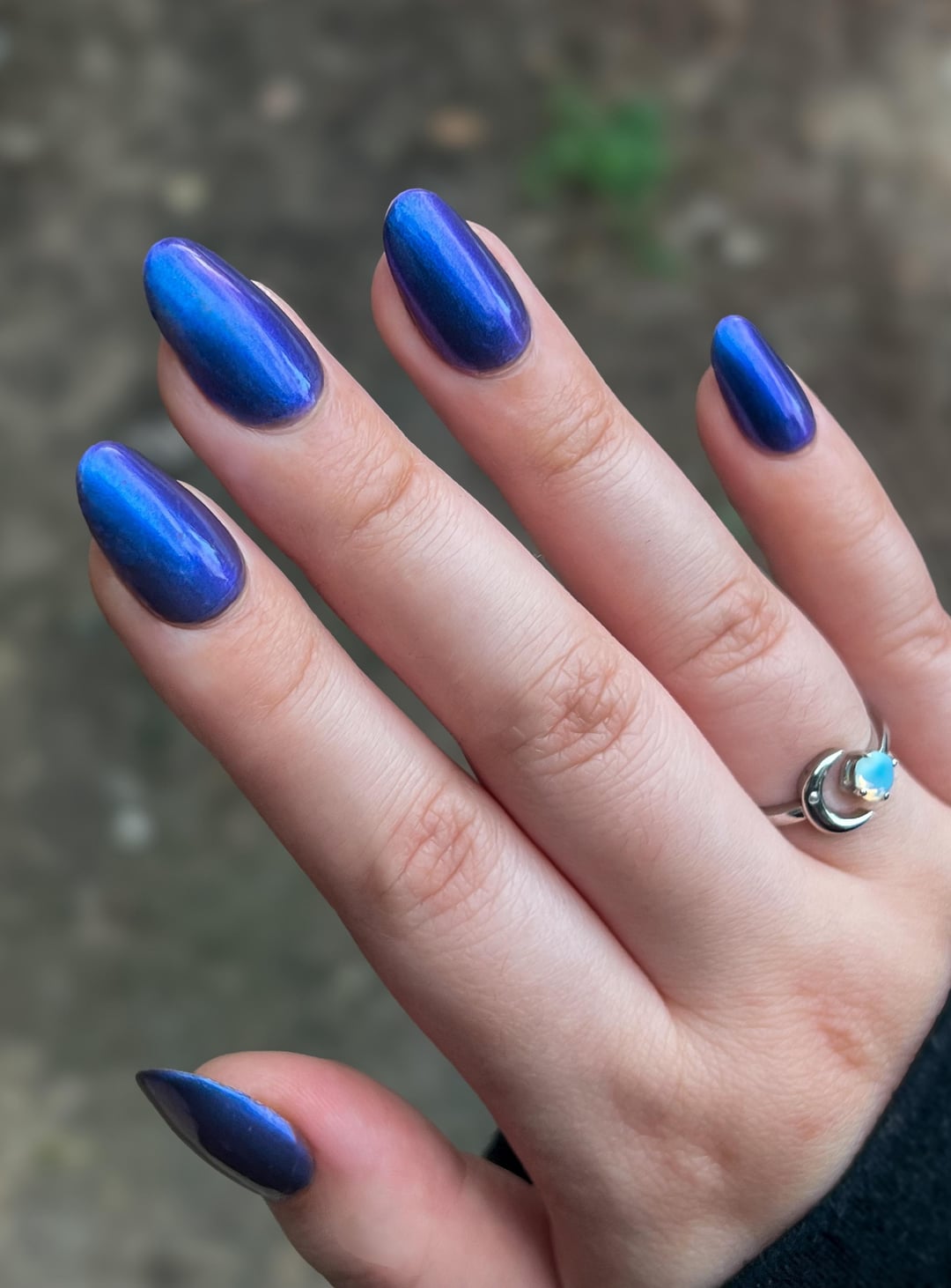 Products used: Holo Taco Shadow Lake (3 coats), Hit The Bottle Rose Ash Undies Peel Off Base Coat, Vibrant Scents Fast & Hard Scented Quick Dry Top Coat, AILLSA short clear oval nail tips