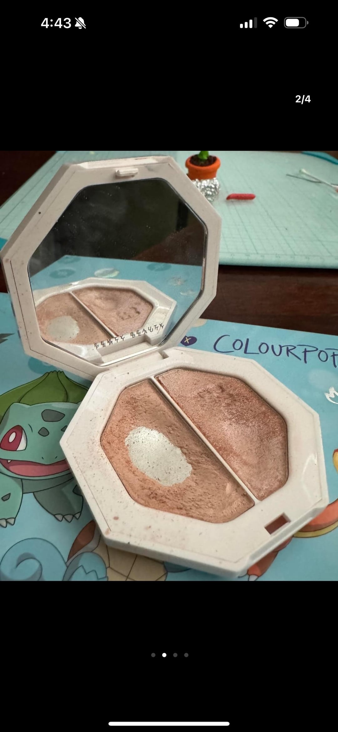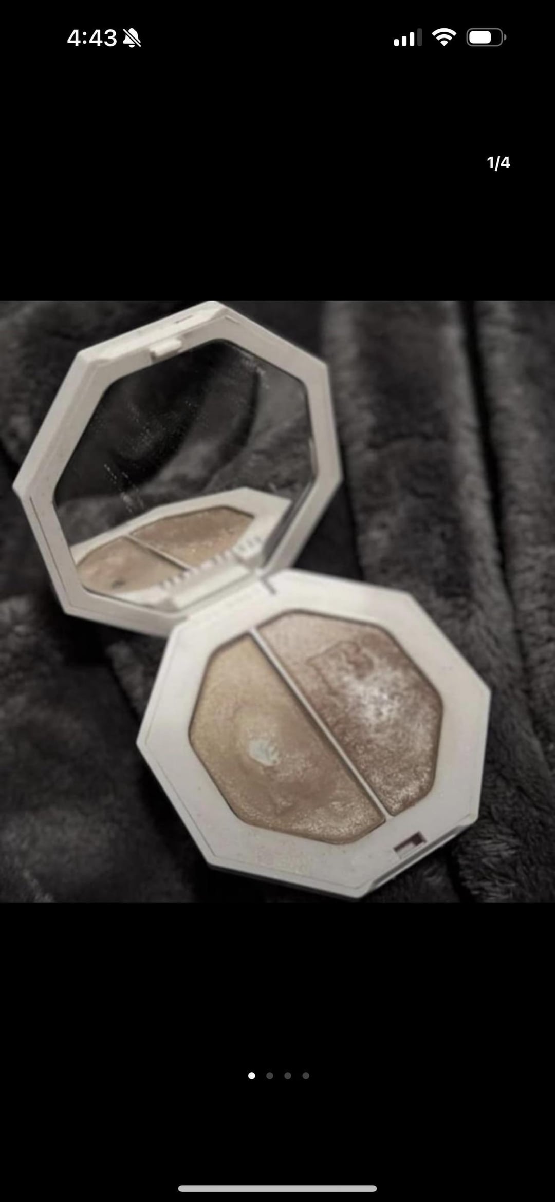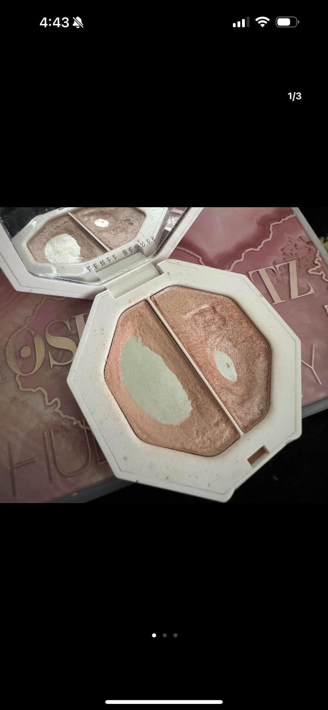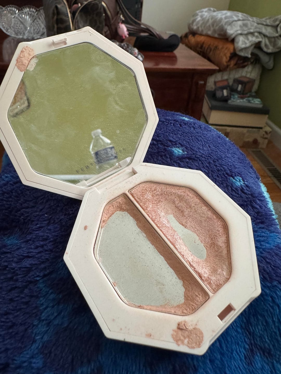 Very pretty champagne colored highlighter, left side is more subtle than the right side. Fenty Beauty has always made the best highlighters.